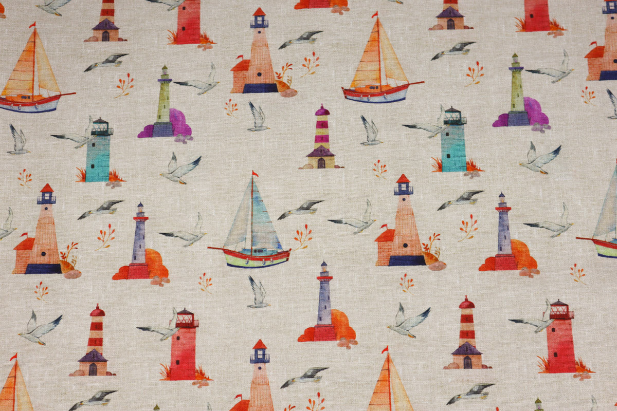 Super schöner Dekostoff mit maritimen Motiven. Leichte, weiche Qualität in Digitaldruckverfahren.