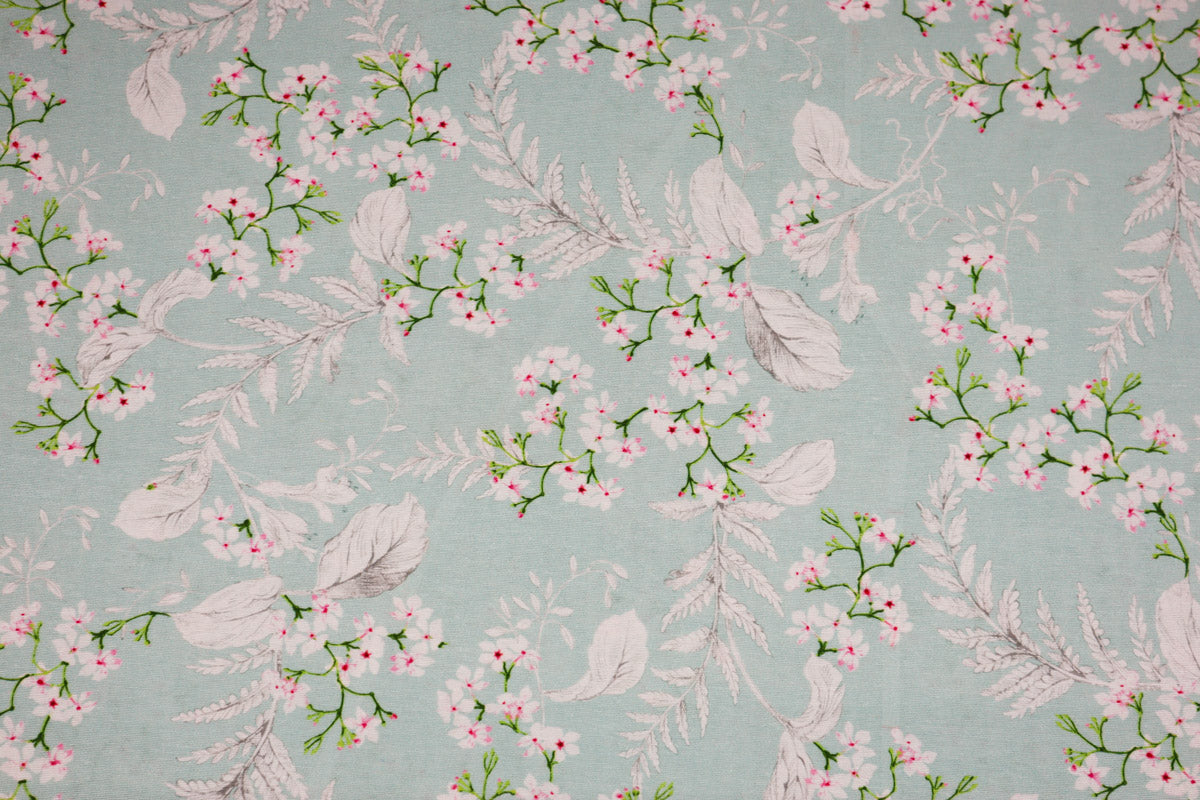 Super schöner Dekostoff mit zarten Zweigen und kleinen Blüten.