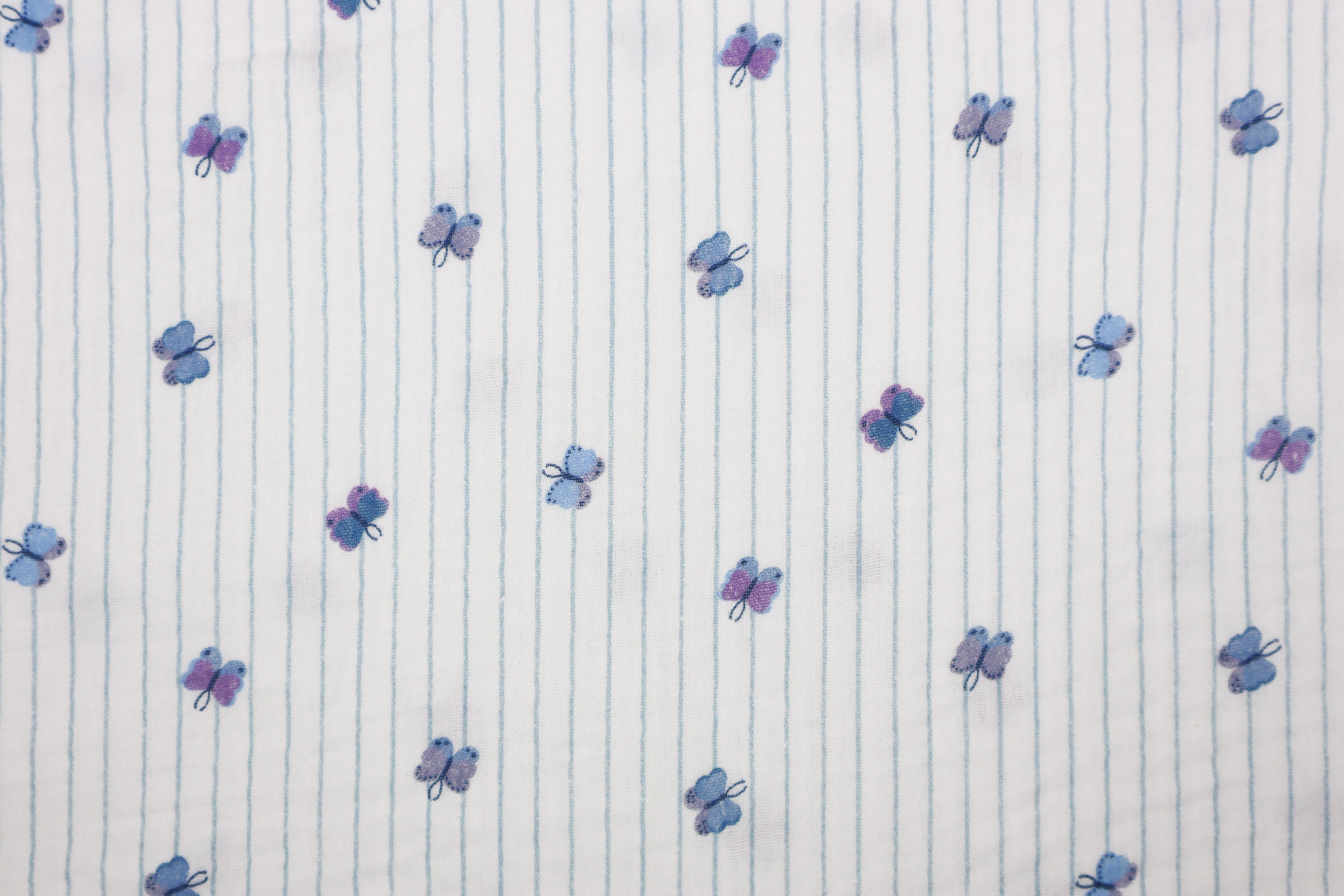 Dieser feine und sehr weiche Baumwollstoff besteht aus zwei Lagen, die punktuell miteinander verwebt sind. Dadurch ist der Stoff blickdicht.