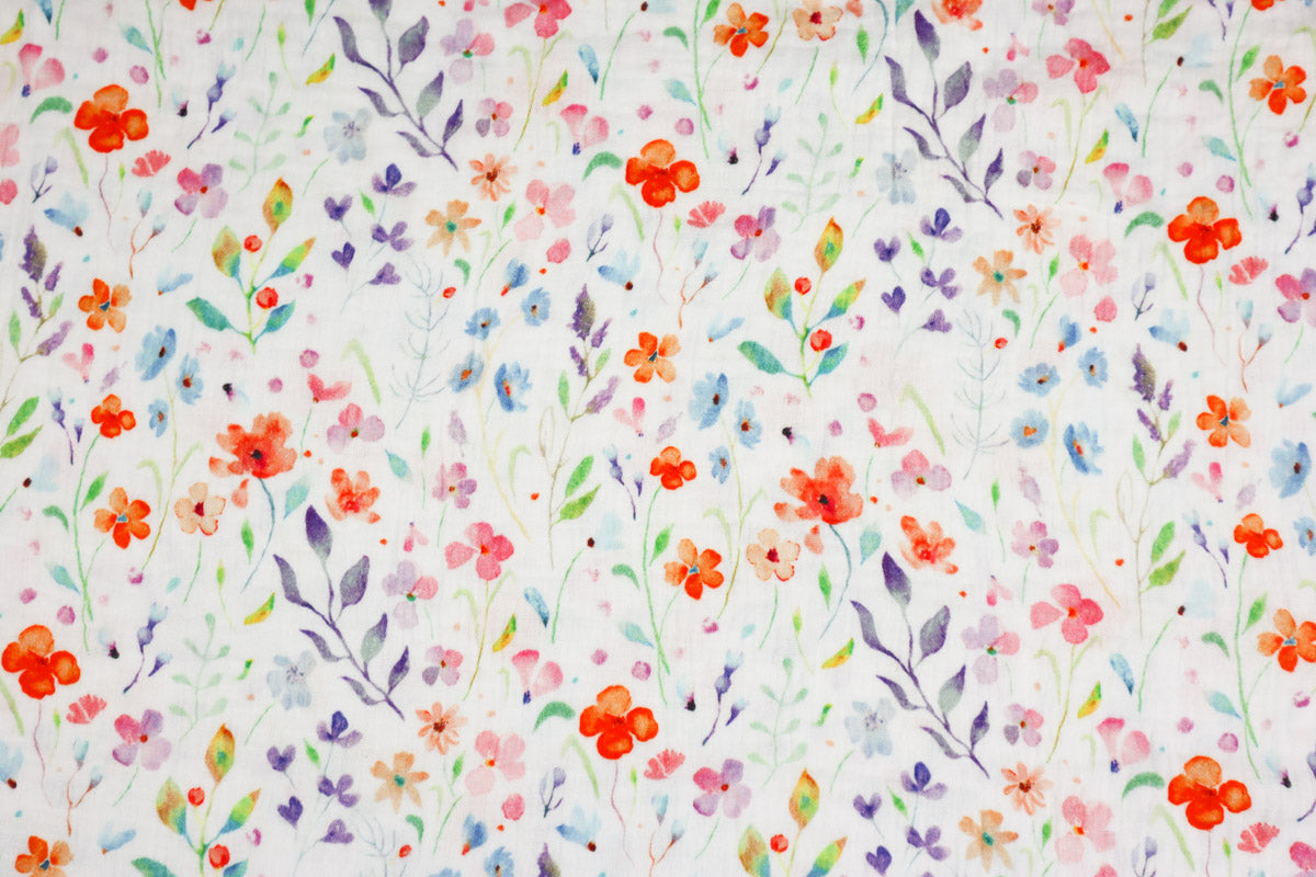 Wunderschönes, buntes Blumen-Muster auf wollweißem Grund.