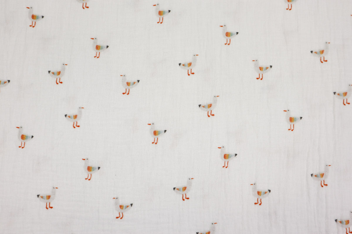 Super schönes Design mit Möwen in sanften Erdtönen auf wollweißem Grund.
