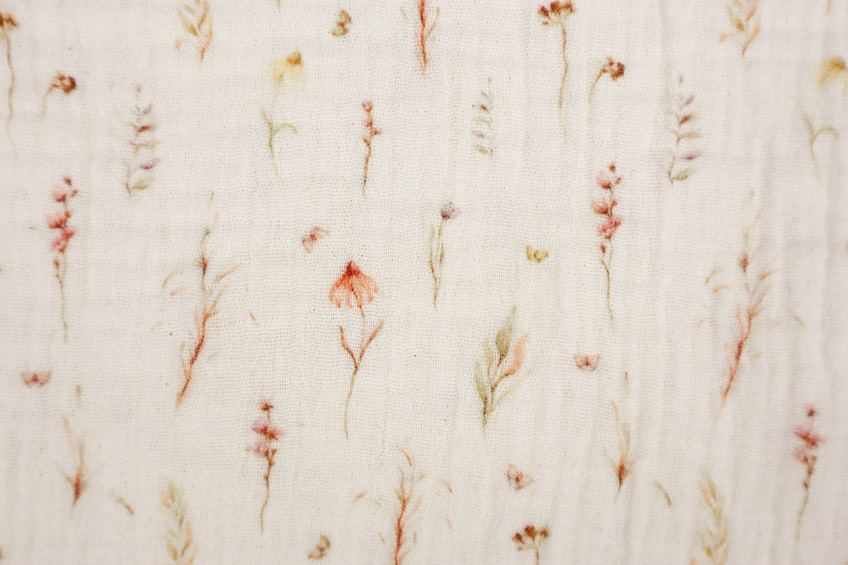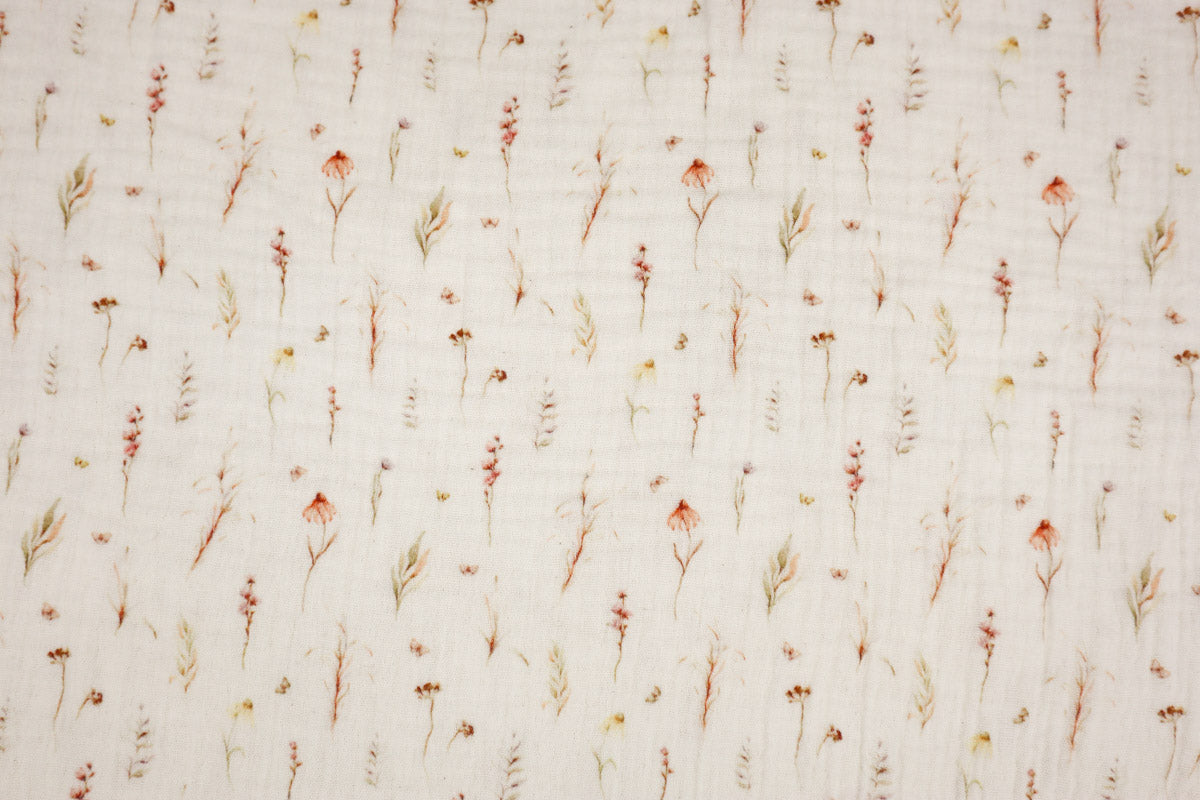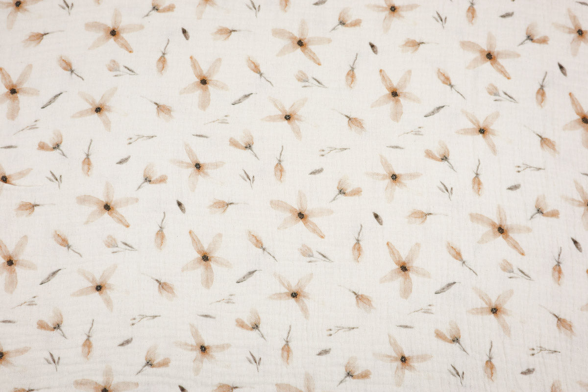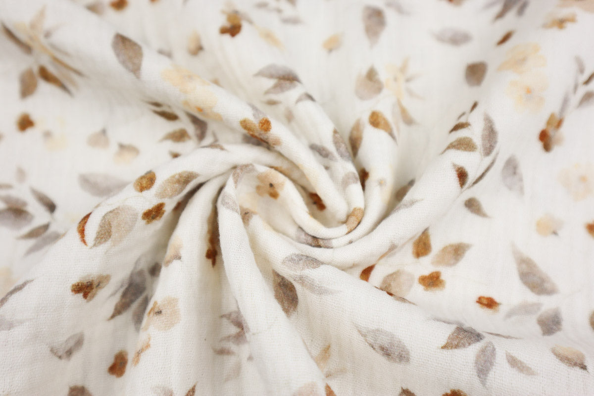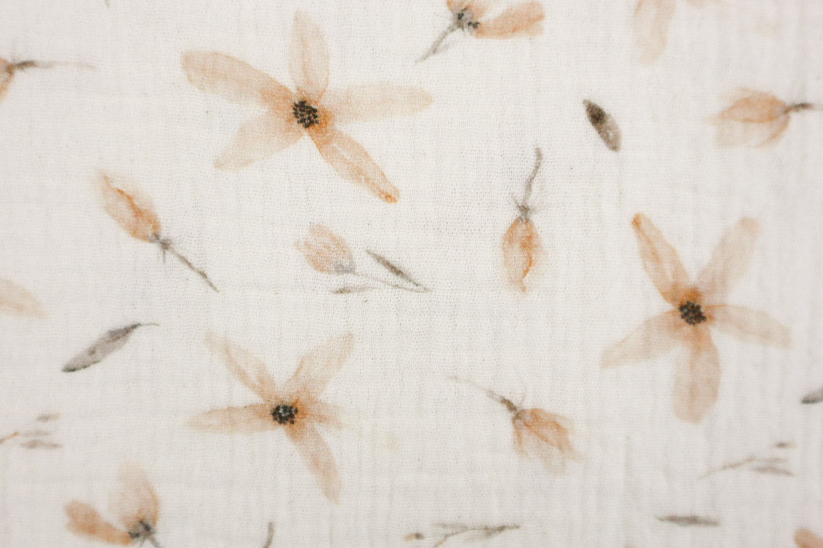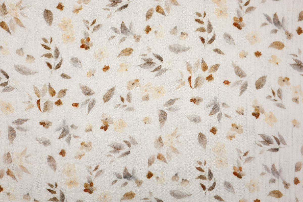 Wunderschönes, Blumen-Muster in Erdtönen auf wollweißem Grund.