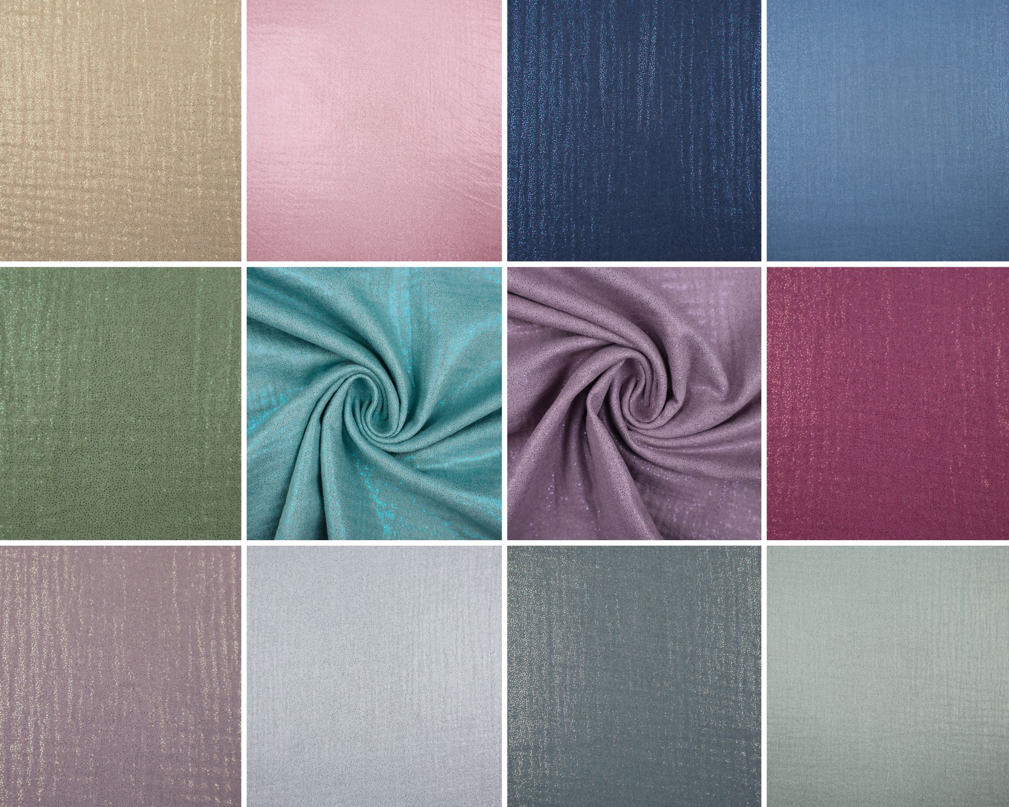 Super schöner Musselin mit leichtem Glitzer-Schimmer dank zarter Folie.