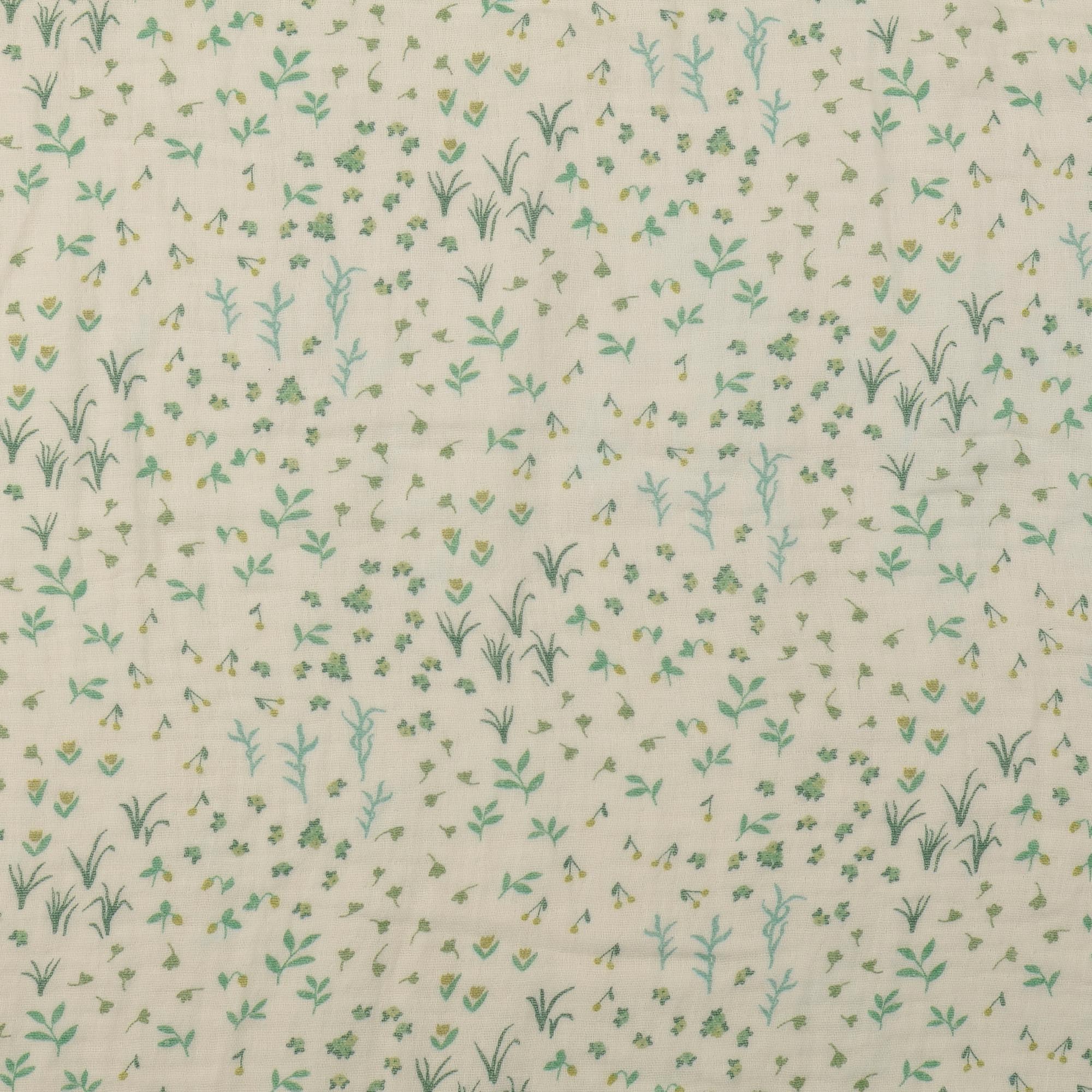 Frisches Design mit Blumen und Gräsern auf wollweißem Grund. Die größeren Gräser sind ca. 2,5 cm hoch.
