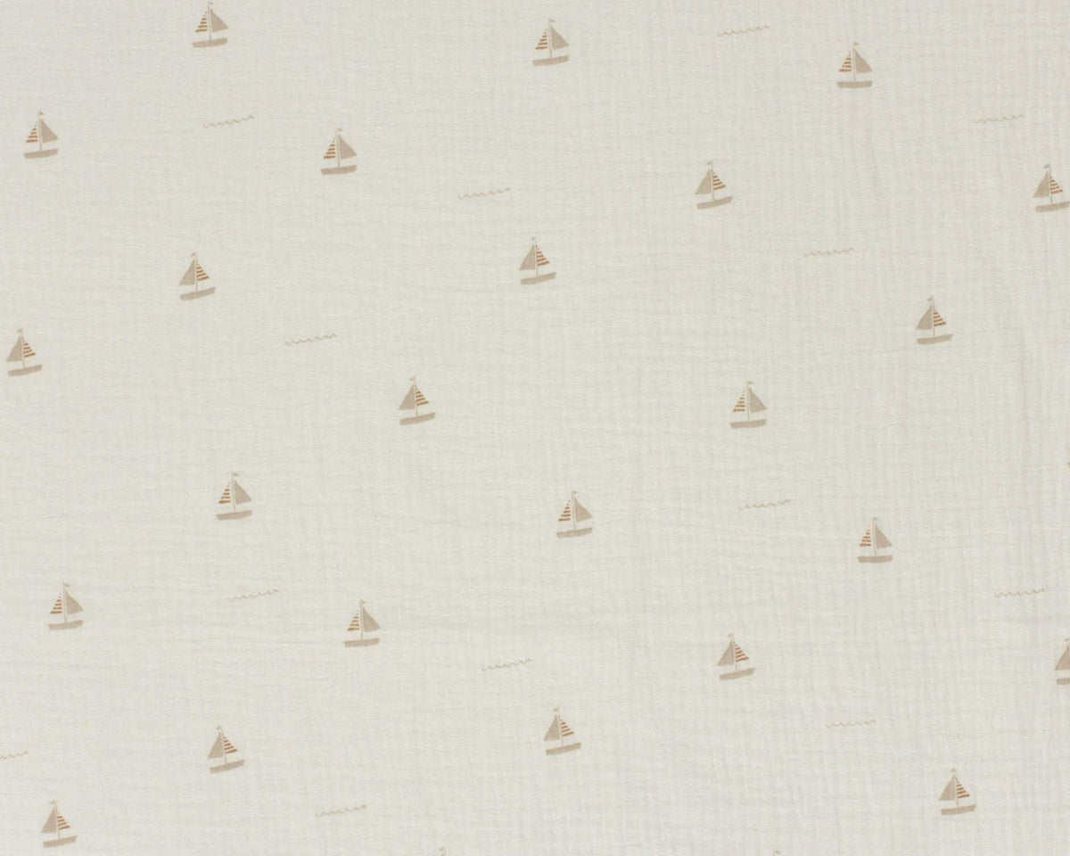 Tolles, maritimes Muster in Naturtönen mit kleinen Segelschiffen auf hoher See.