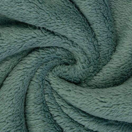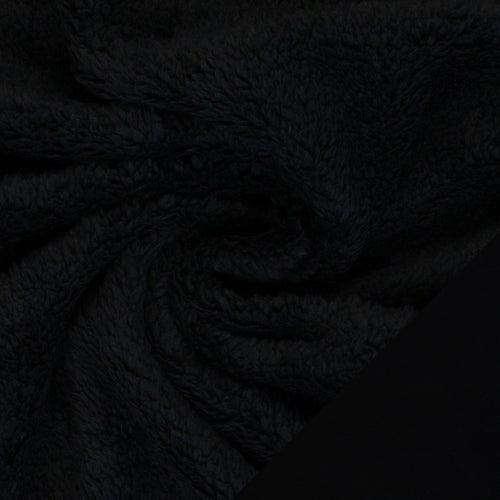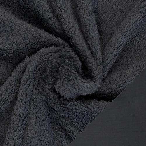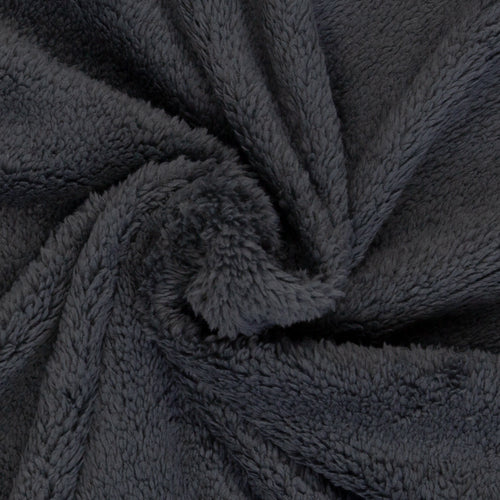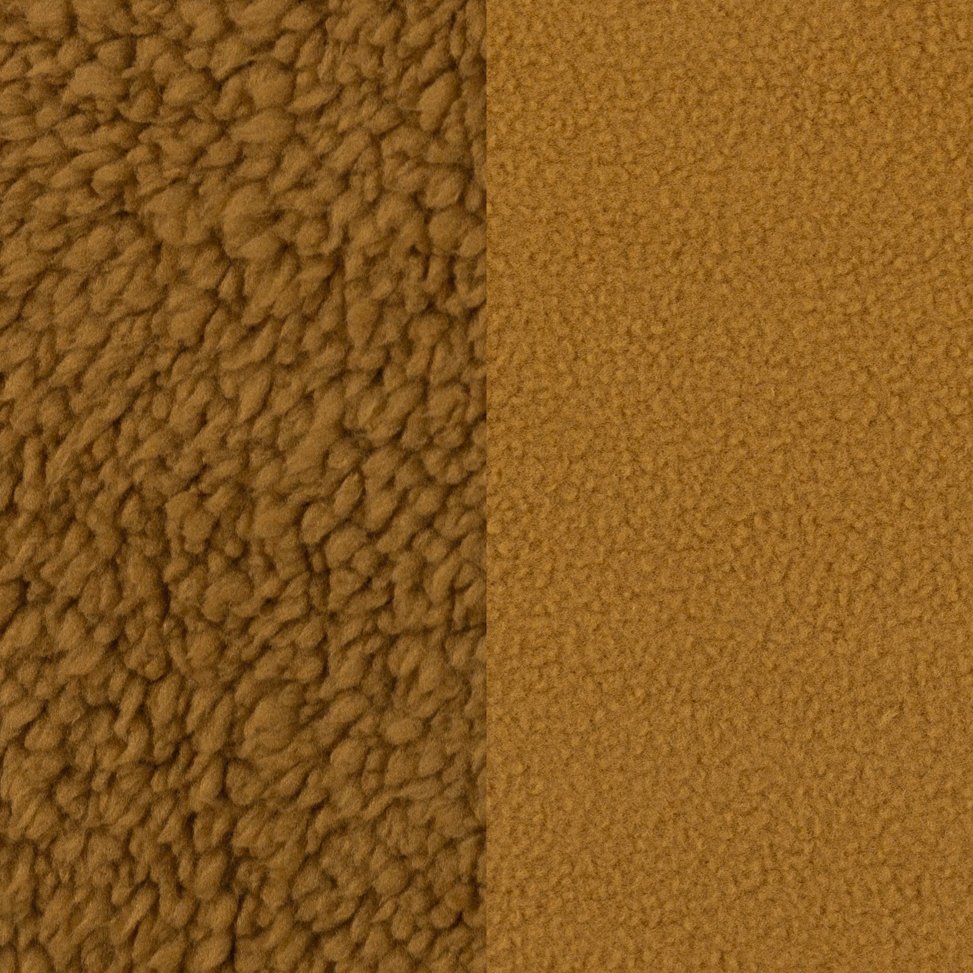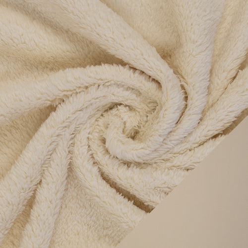 Die eine Seite ist hochfloriger Plüschstoff, die Abseite ist Fleece.