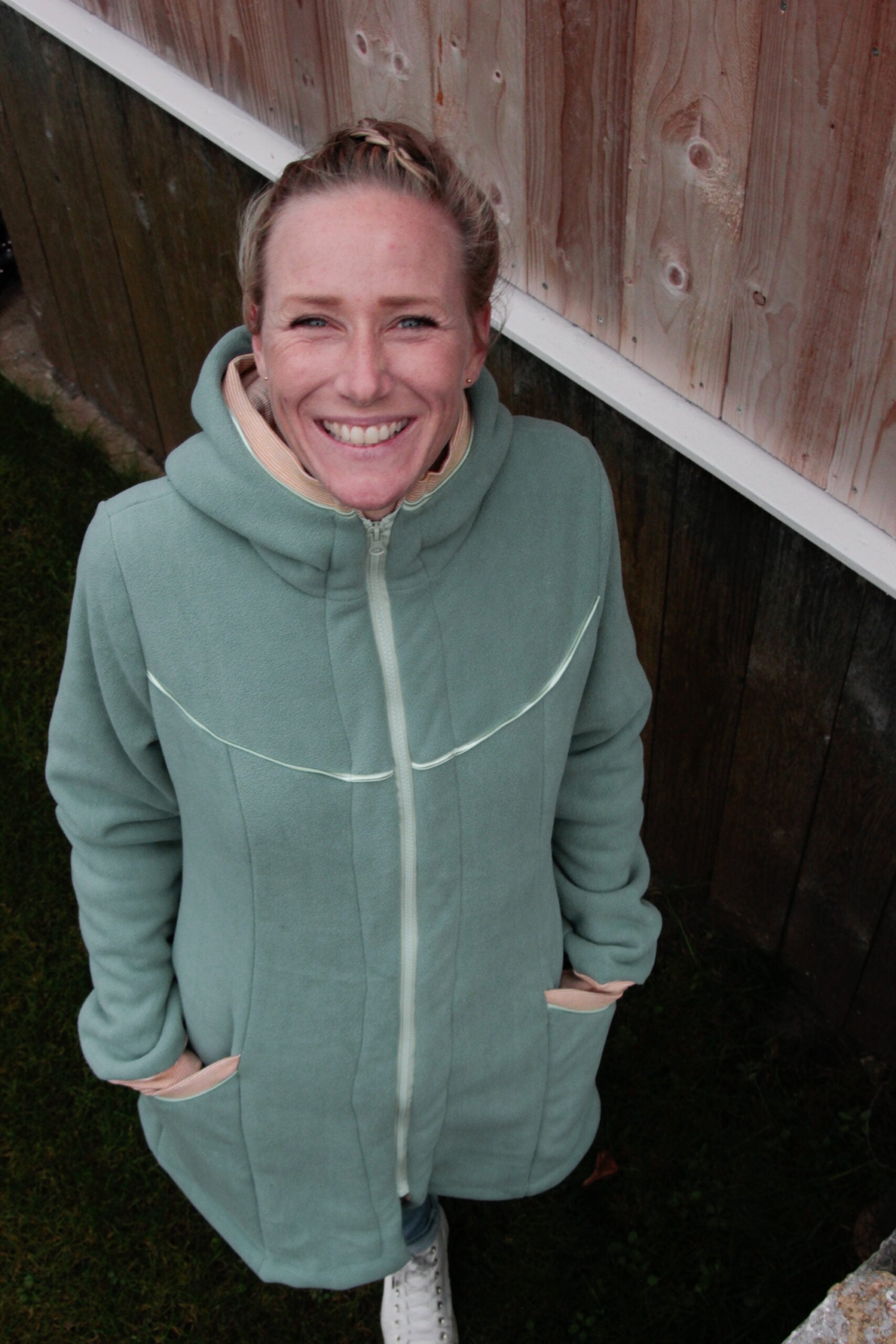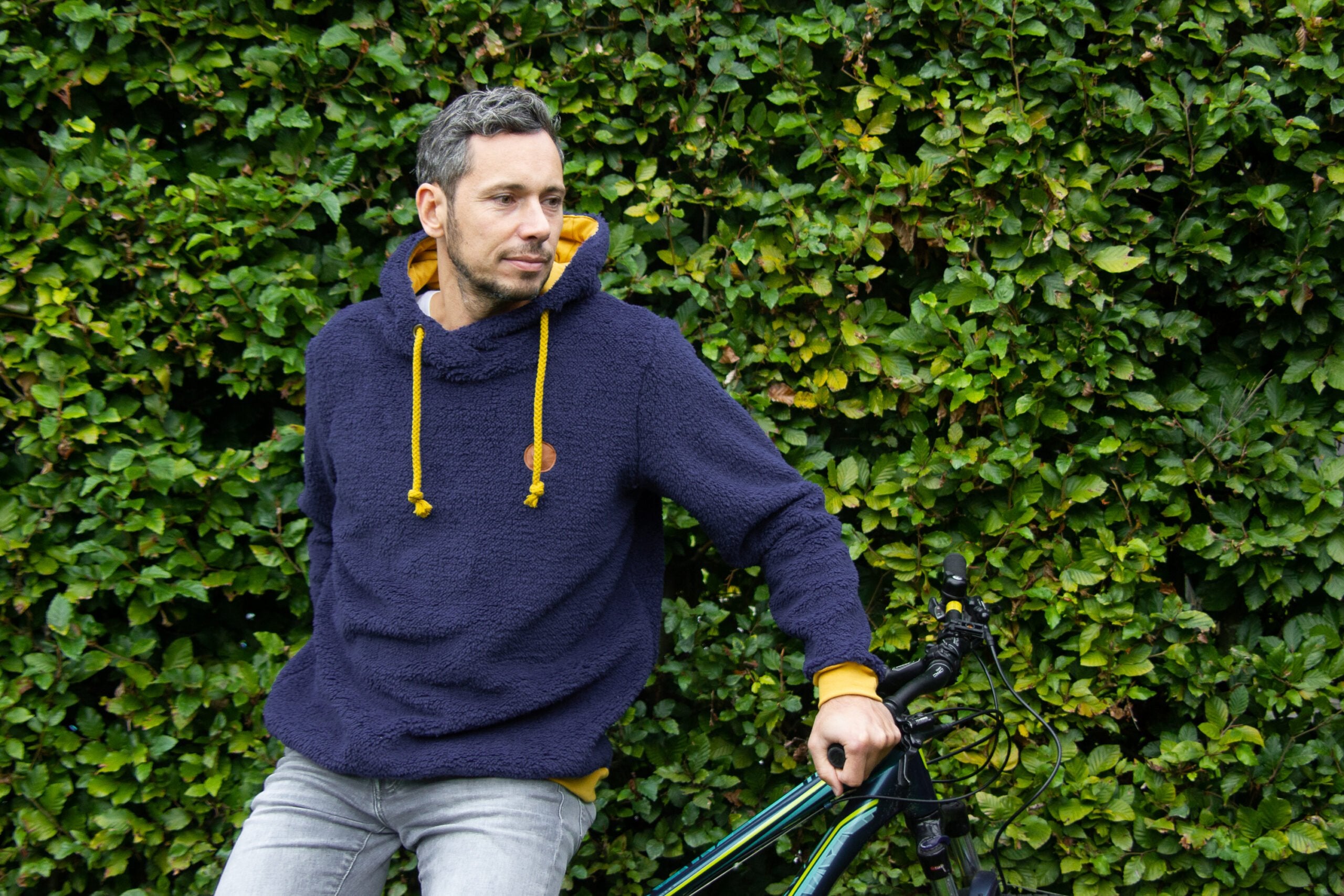 Herren-Hoodie mit Wickelkapuze aus dem Buch „Nähen mit Jersey – Klimpergroß“ von Pauline Dohmen / Klimperklein, Gr. XL.