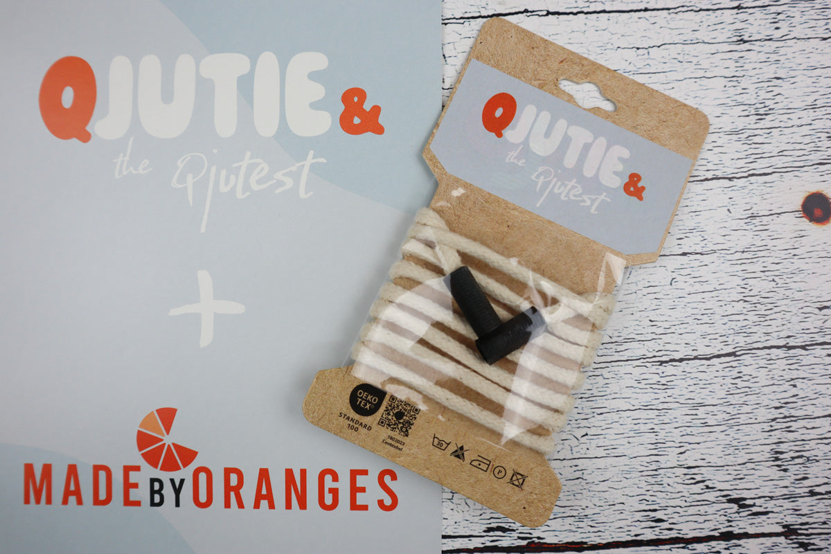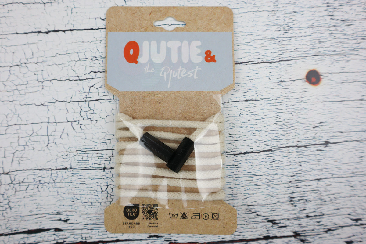 Fertige 1,15m lange Baumwollkordel mit Endstücken in schwarz.