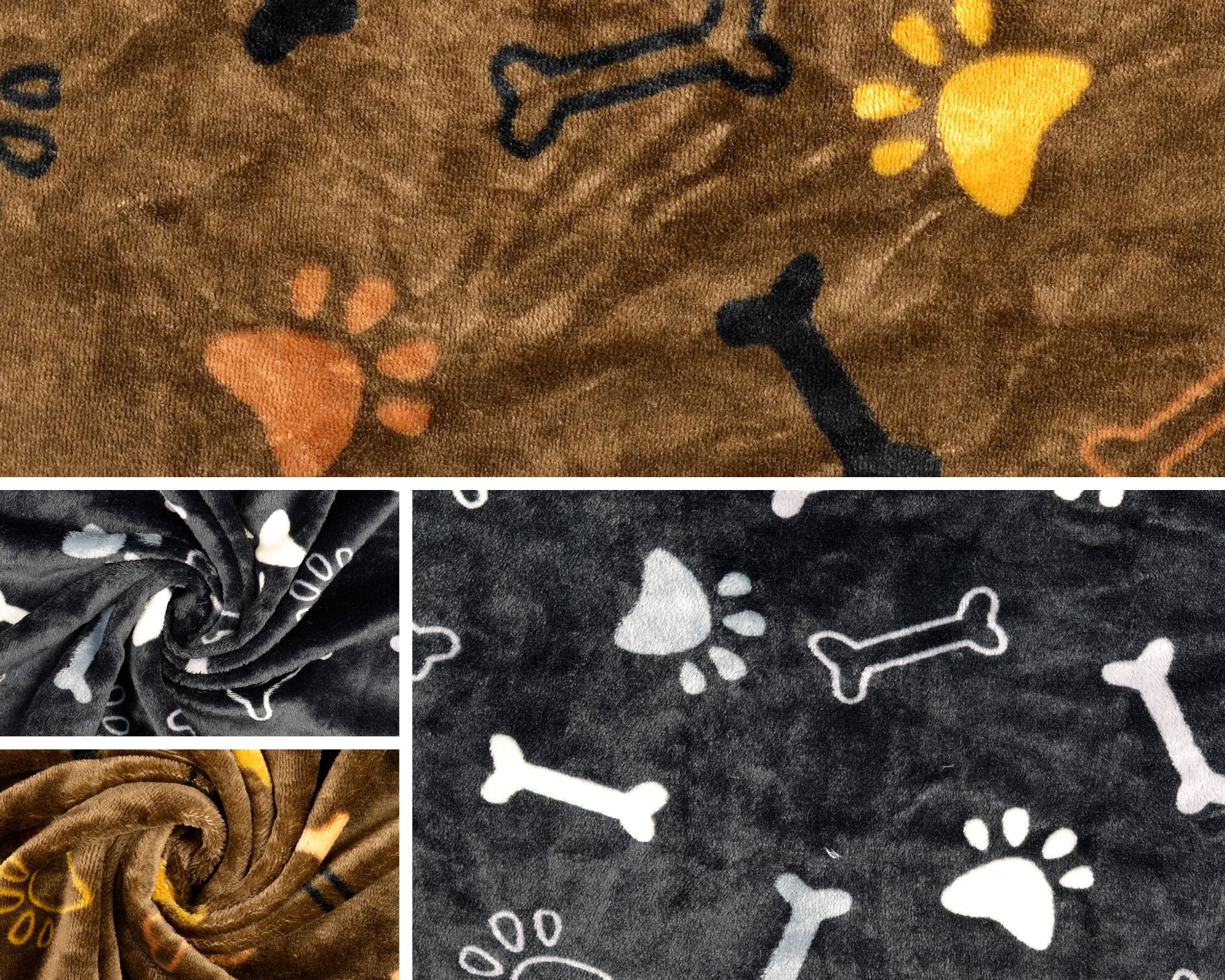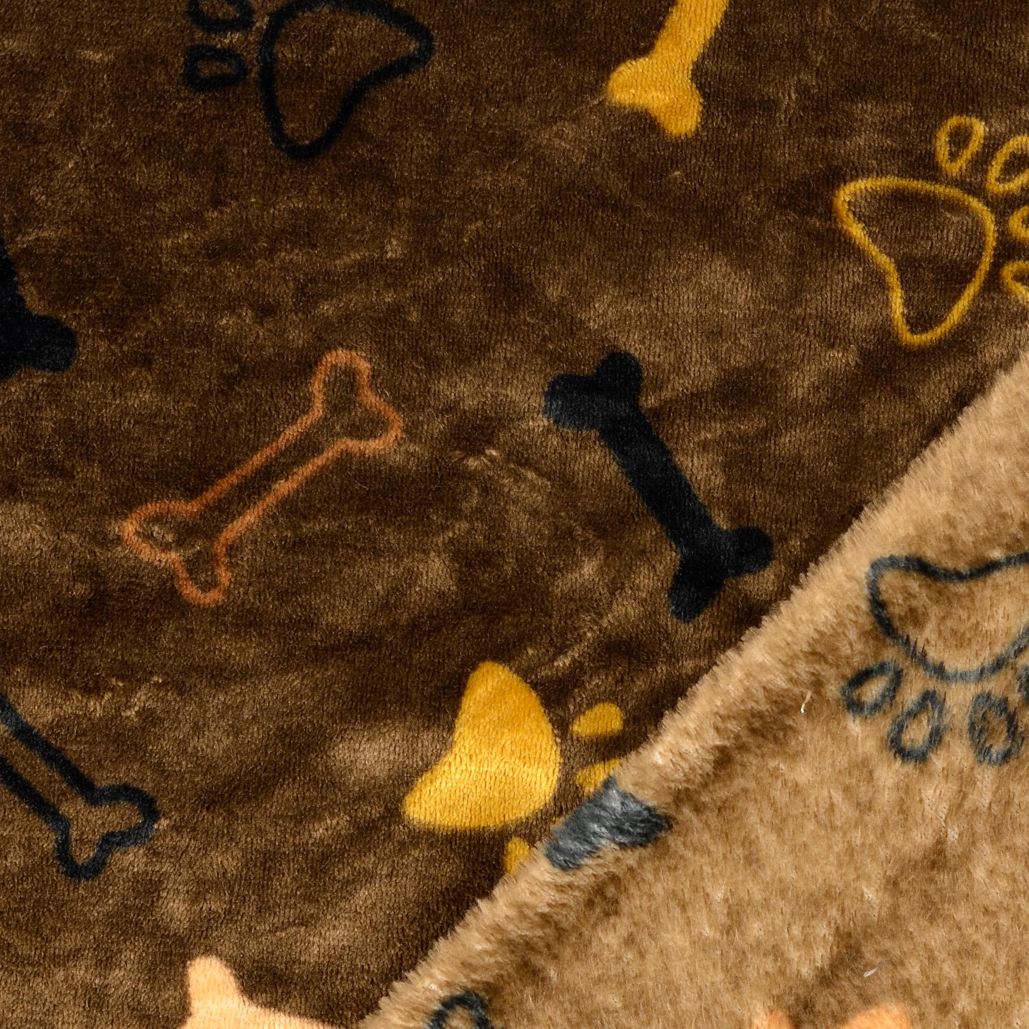 Super flauschiger, kuschelig weicher Microfleece mit kleinen Pfoten/Tatzen und Knochen.