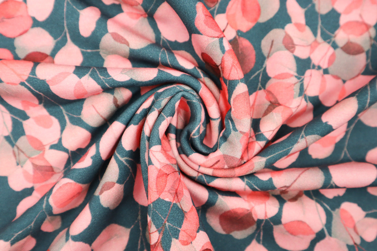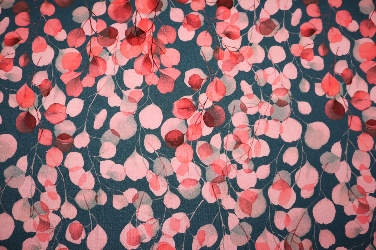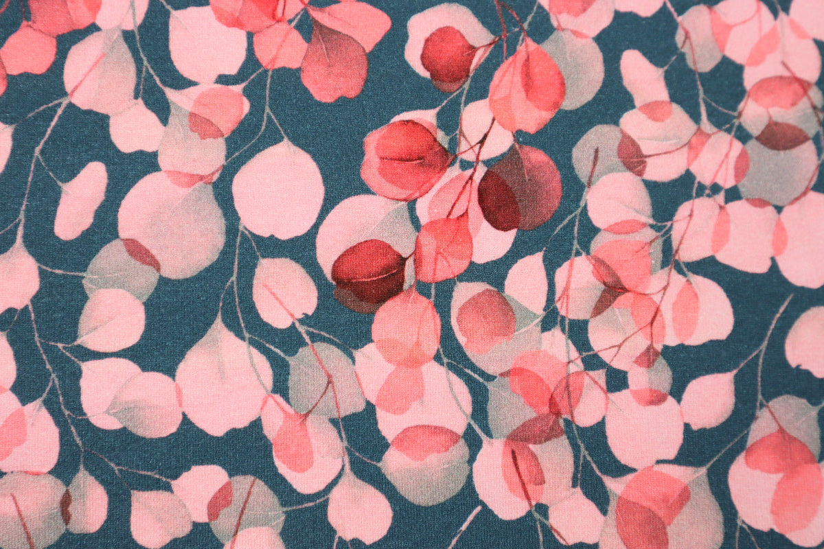 French Terry angeraut Eukalyptus SH - koralle/dunkelgrau