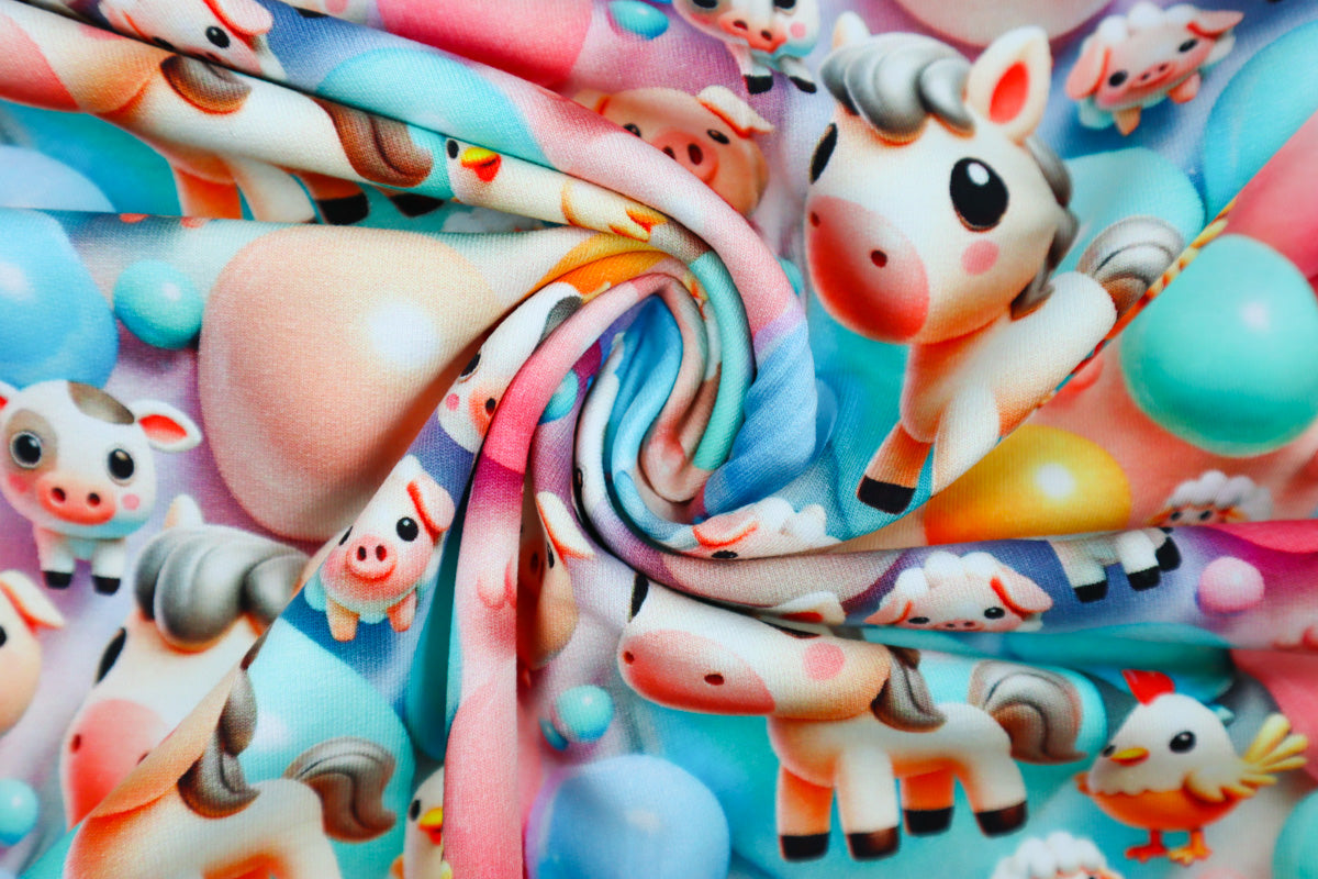 Niedliche kleine Bauernhoftiere und Luftballons.