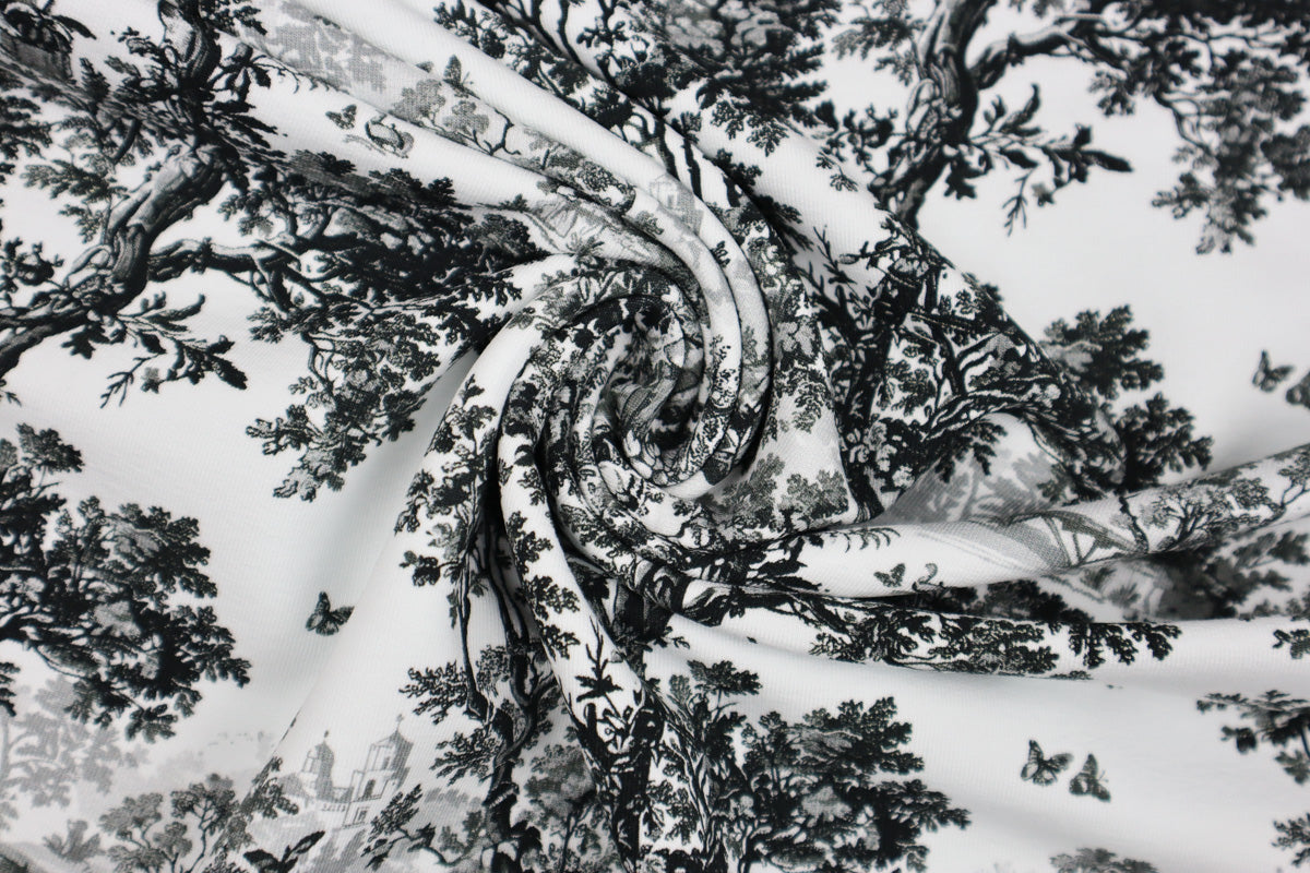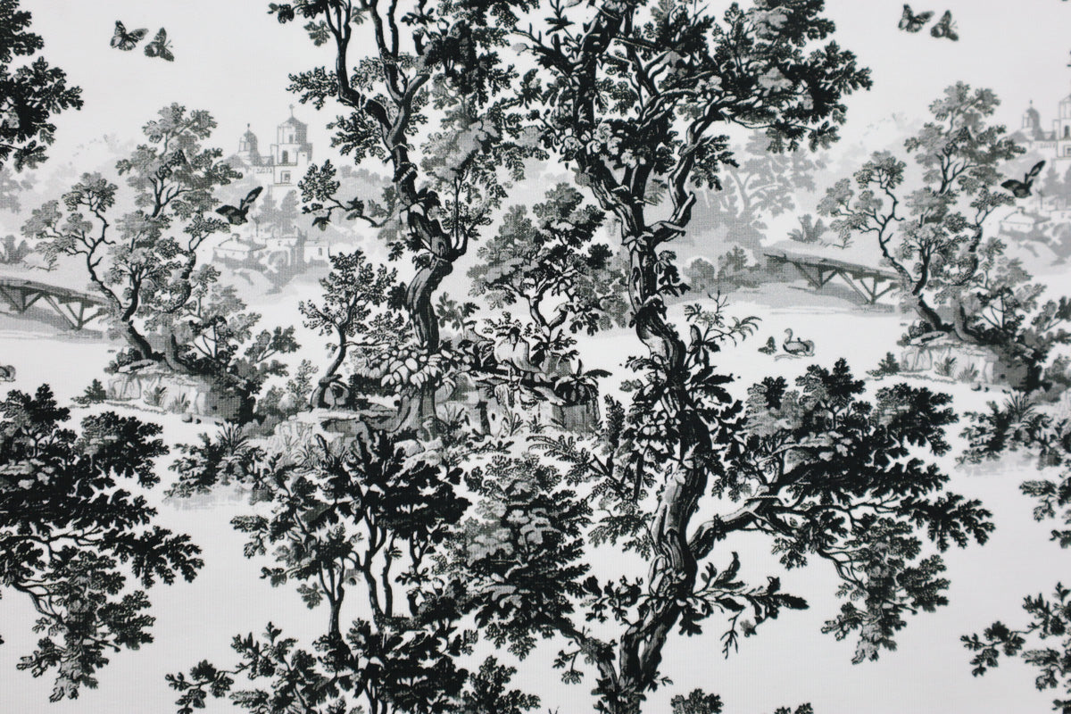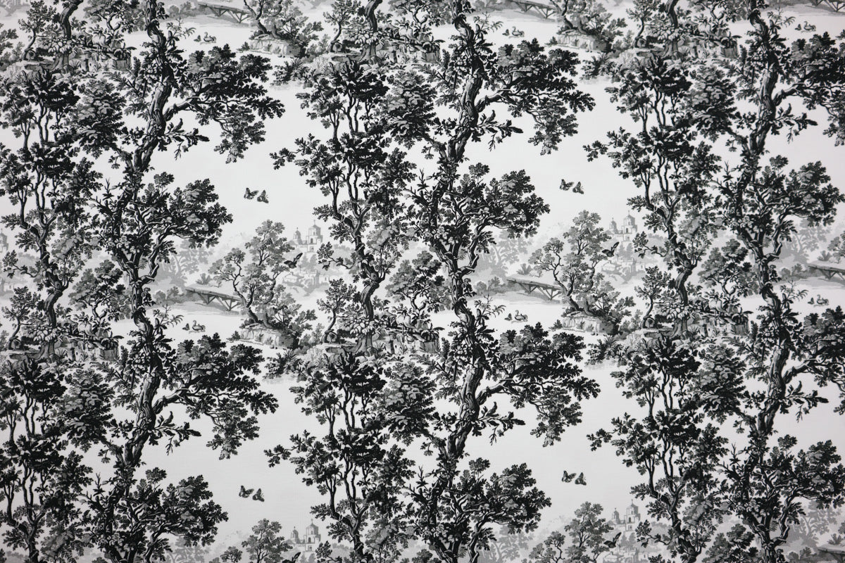 Schönes Landschaftsmuster in schwarz/weiß mit großen Bäumen.