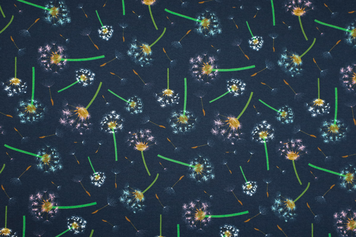 Wunderschönes Design mit Pusteblumen auf dunkelblauem Grund.