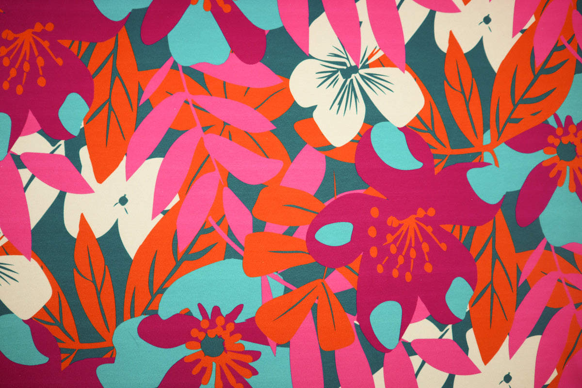 Tolles, großes Muster mit Blumen und Blüten in knalligen Farben .
