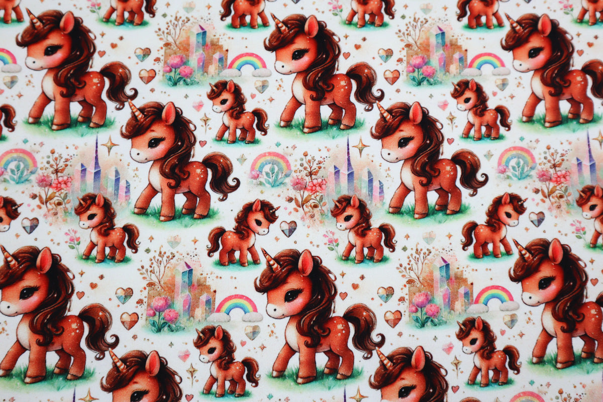 Niedliche Einhörner , Regenbögen und Diamanten in zarten Farben auf naturweißem Hintergrund,