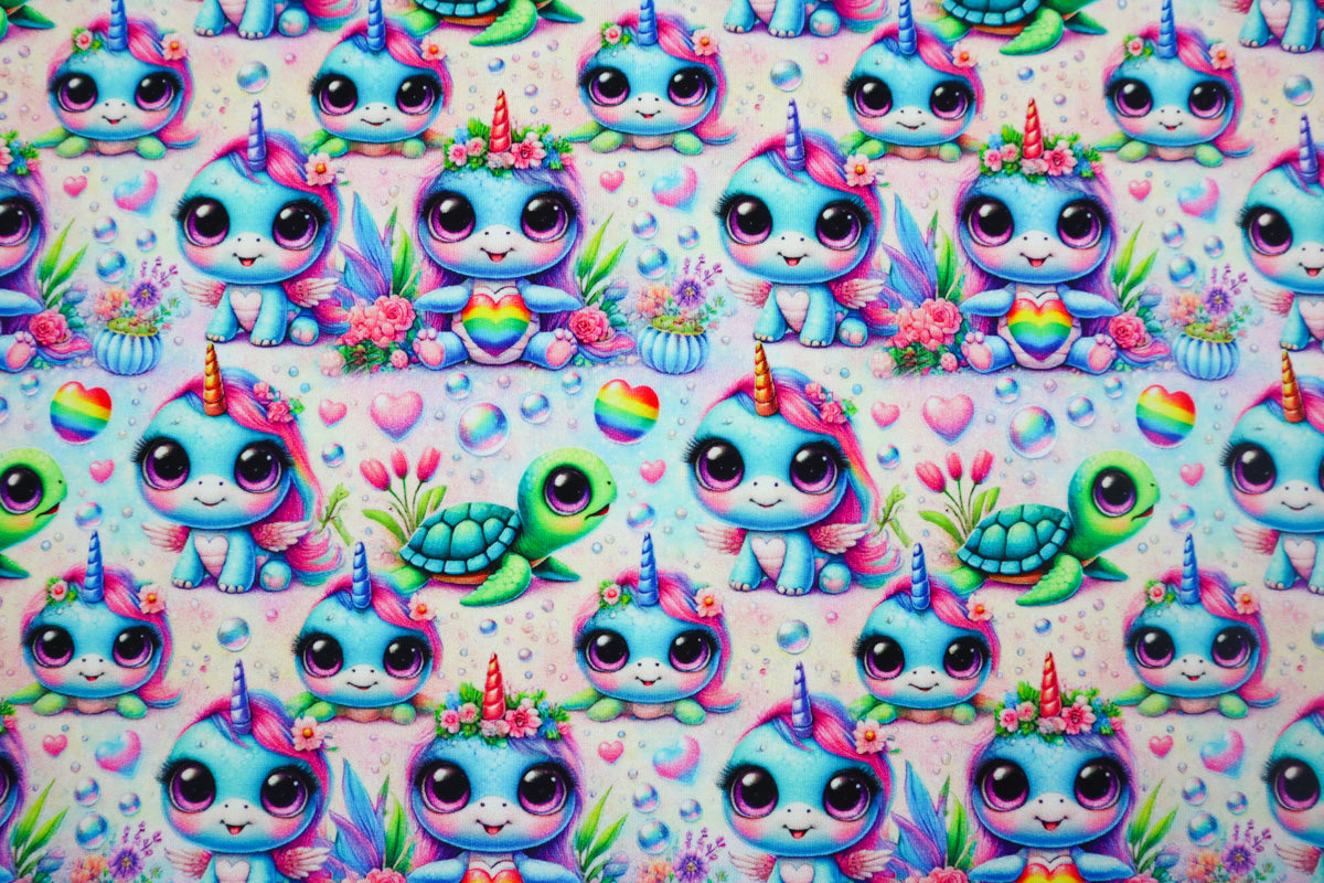 Schönes Muster mit kleinen Einhörnern und Schildkröten.
