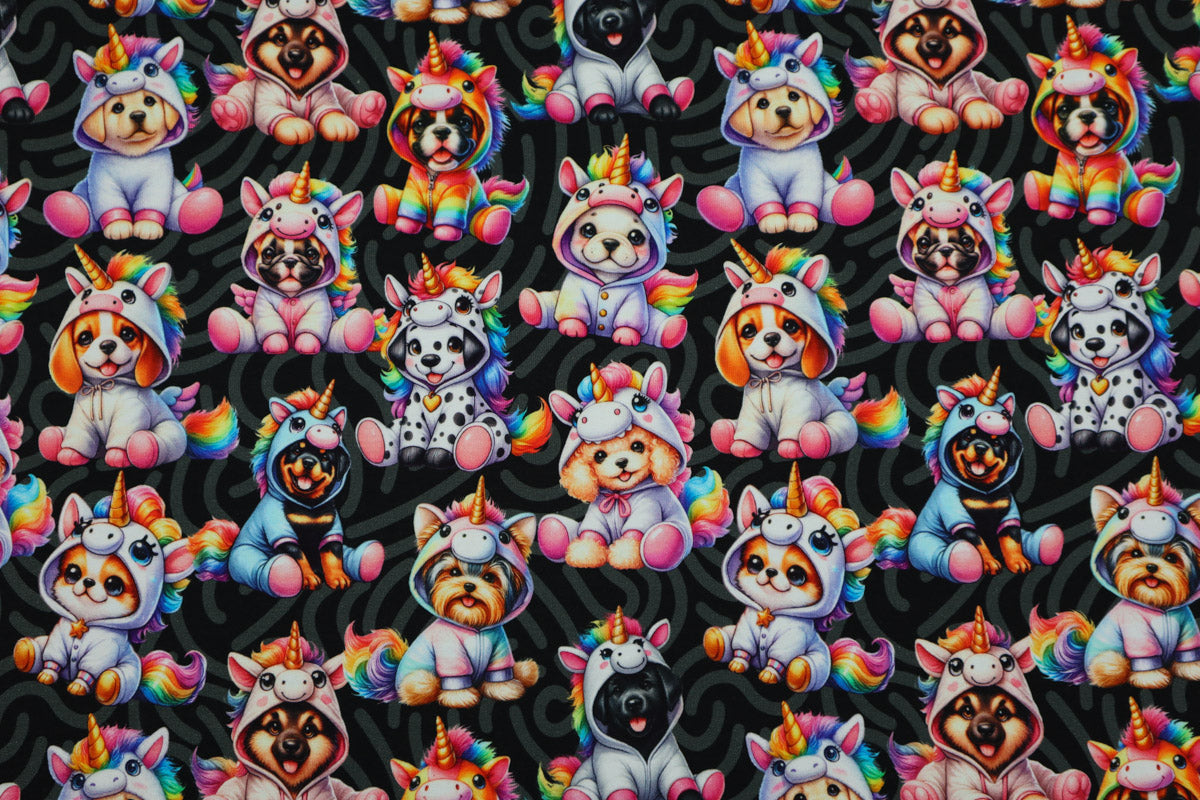 Super süßes Design für Kinder mit kleinen Hundewelpen im Einhornkostüm.