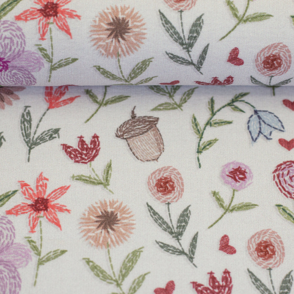 Toller French Terry mit Blumenmuster welches aussieht wie bestickt. In 2 wunderschönen Designs erhältlich.
