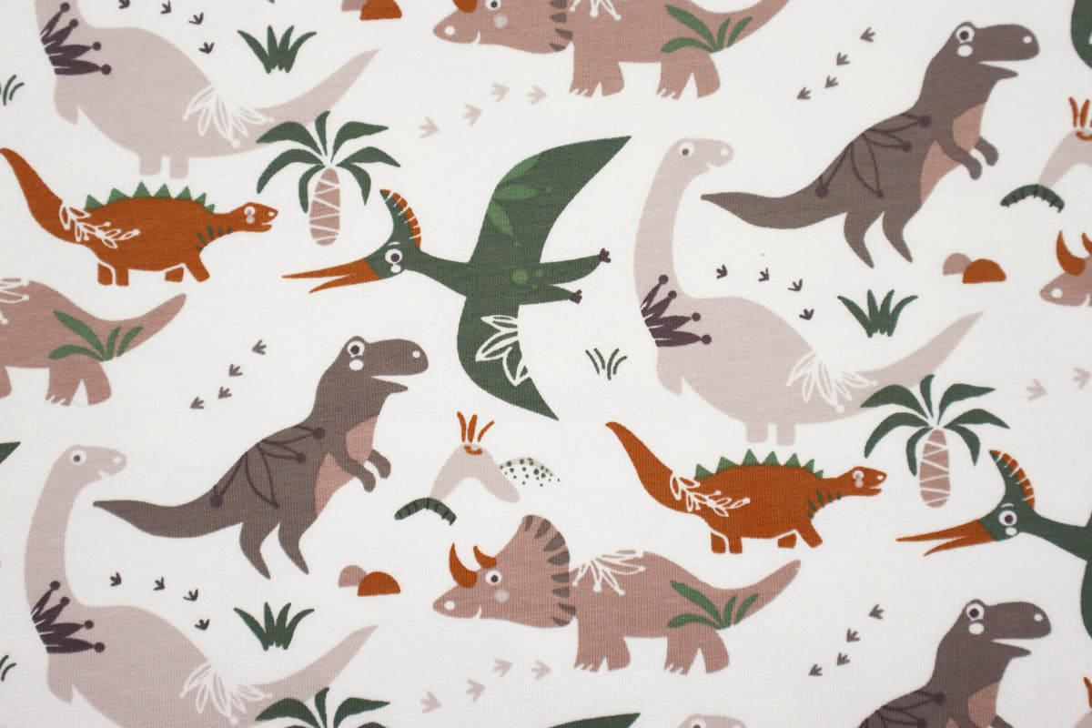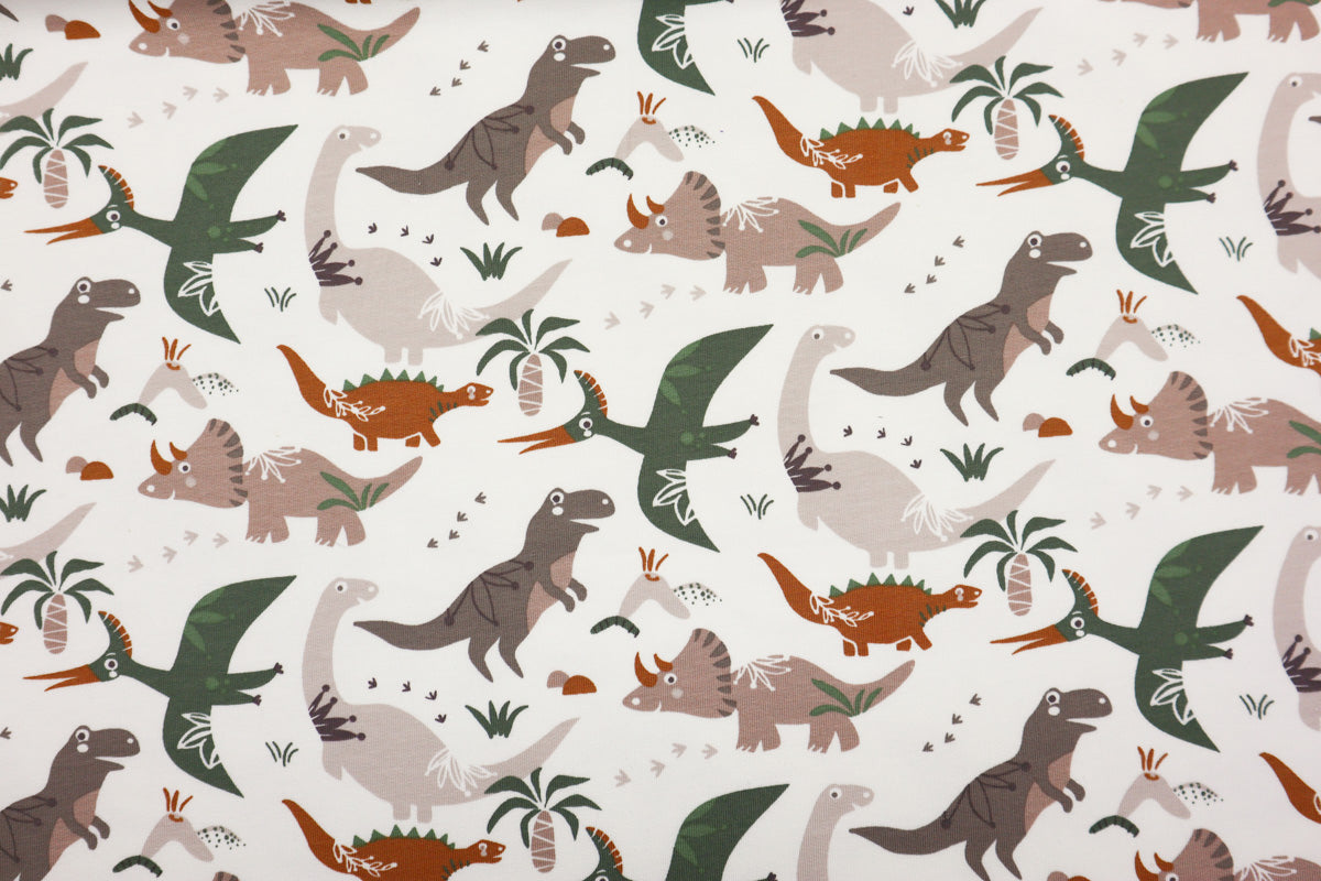 Dino Fans aufgepasst. Hier kommt ein tolles neues Design verschiedenen Dinos, Fußspuren und Palmen.