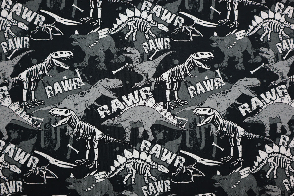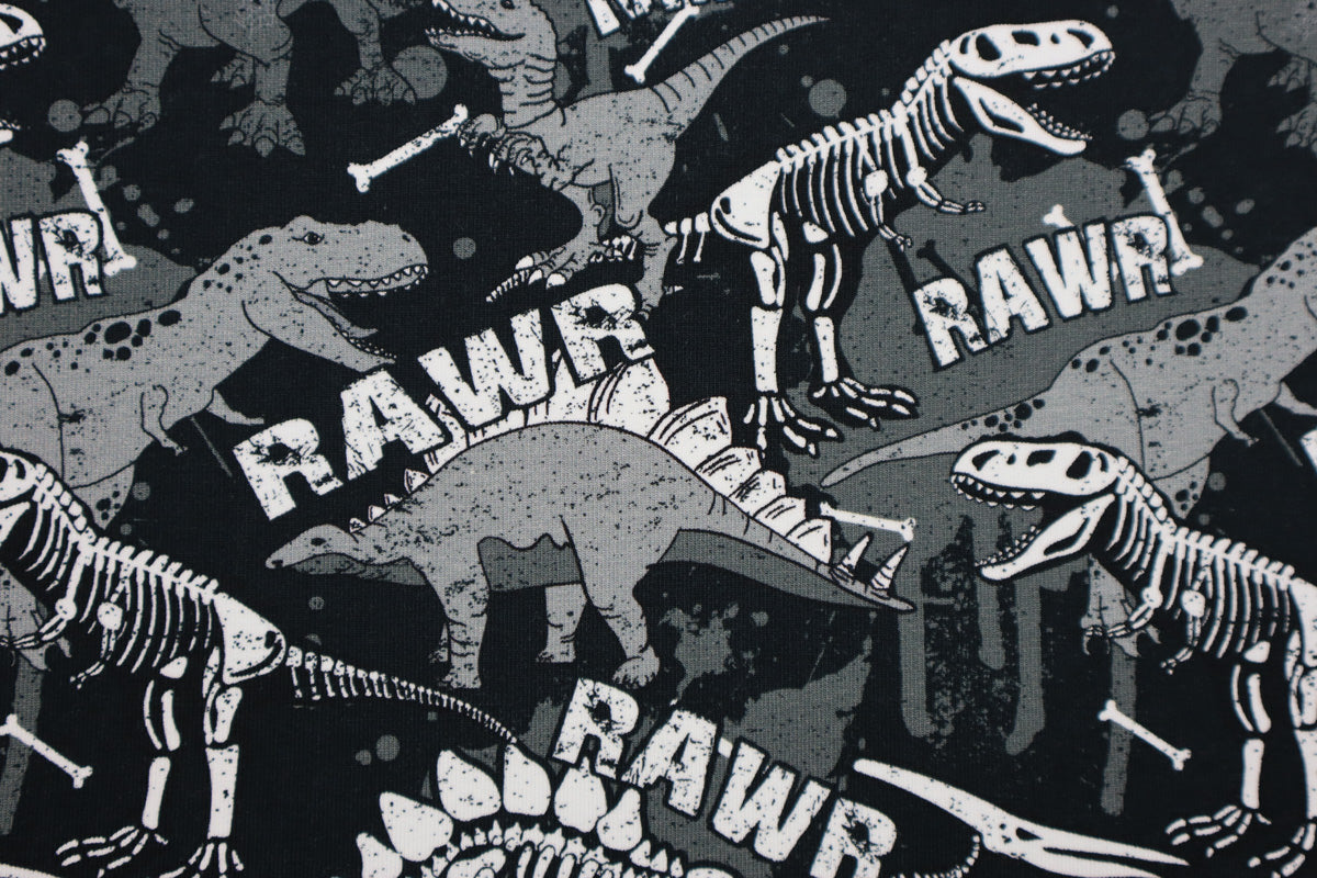 Cooles Dino Muster. Das Wort "RAWR" hat eine Länge von ca 8 cm.
