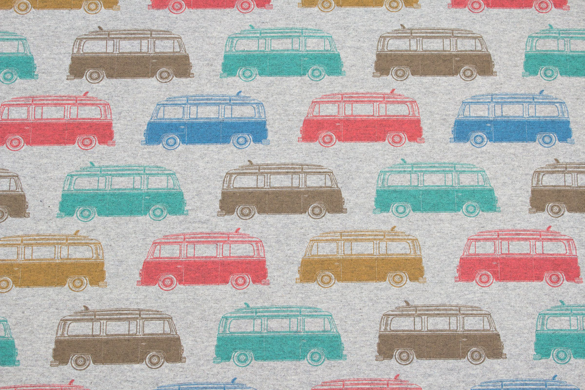 Cooles Design mit trendigen Bullis auf meliertem Hintergrund.