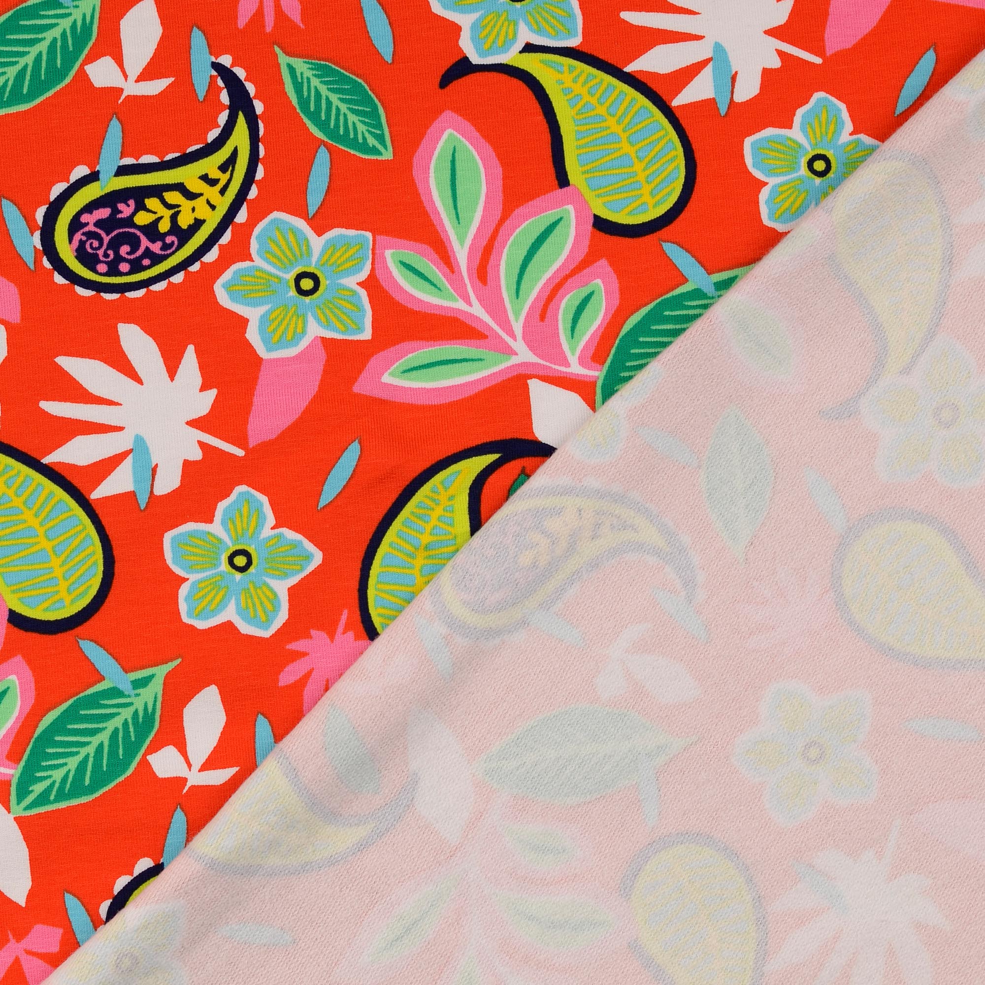 Cooler French Terry mit knallig buntem Blumenmuster in Retro-Stil.