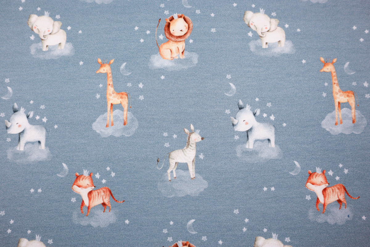 Super schönes Design mit kleinen gekrönten Tieren im Wolkenland zwischen kleinen Sternchen.