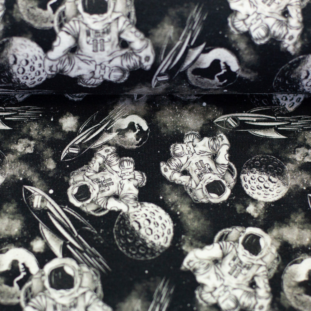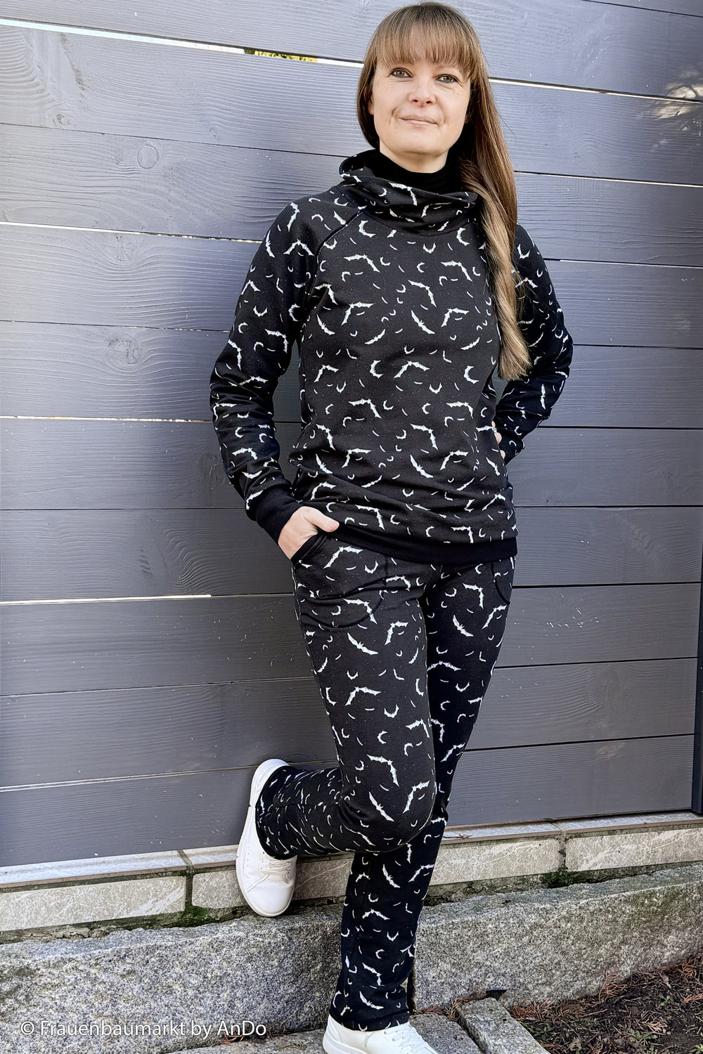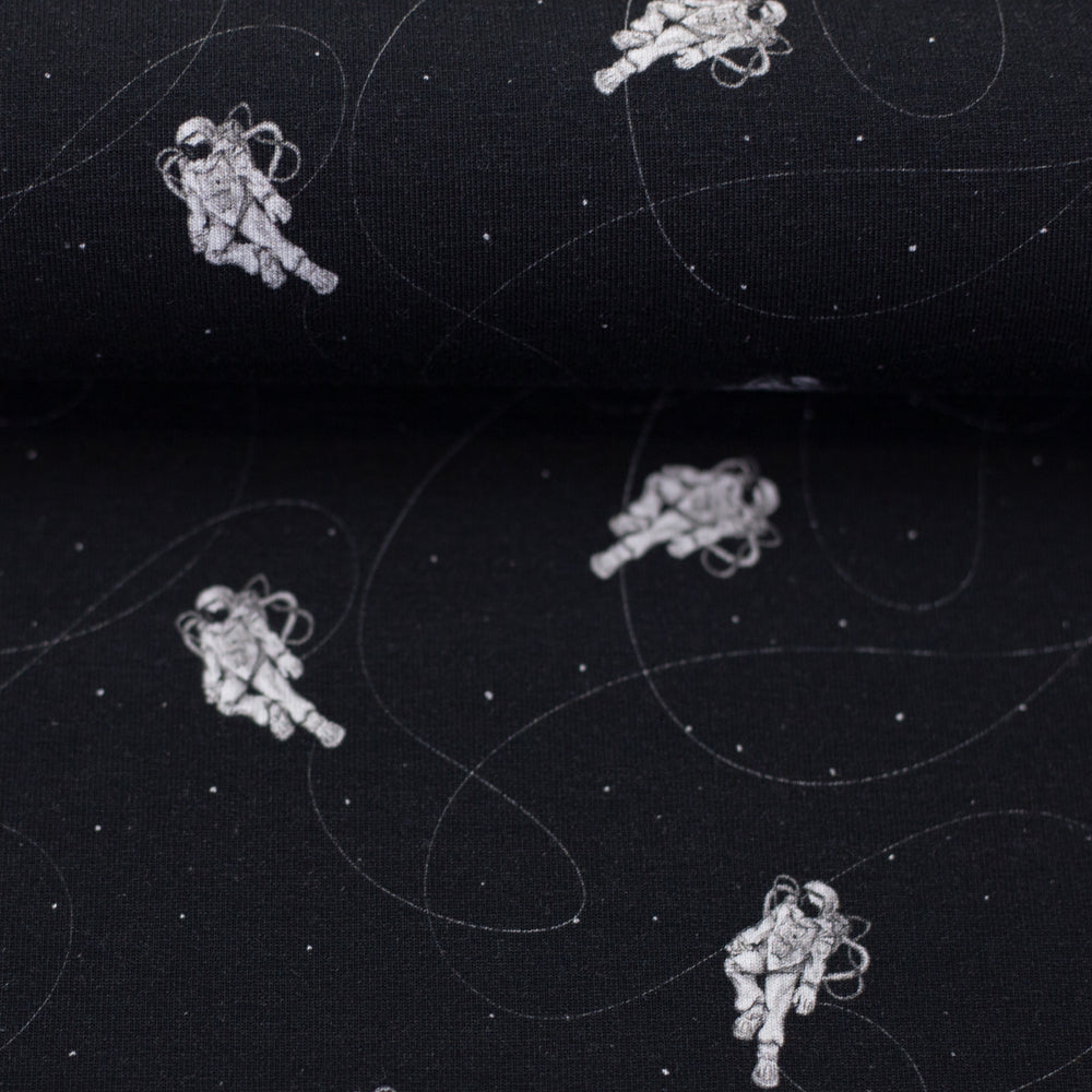 Die Stallaris French Terry Kollektion umfasst zwei Halloween-Motive und drei Weltraumdesigns - wobei das schwarze Universum auch wunderbar zu dem Stoff mit den Fledermäusen passt. Überhaupt sind alle Stoffe wunderbar kombinierbar.
