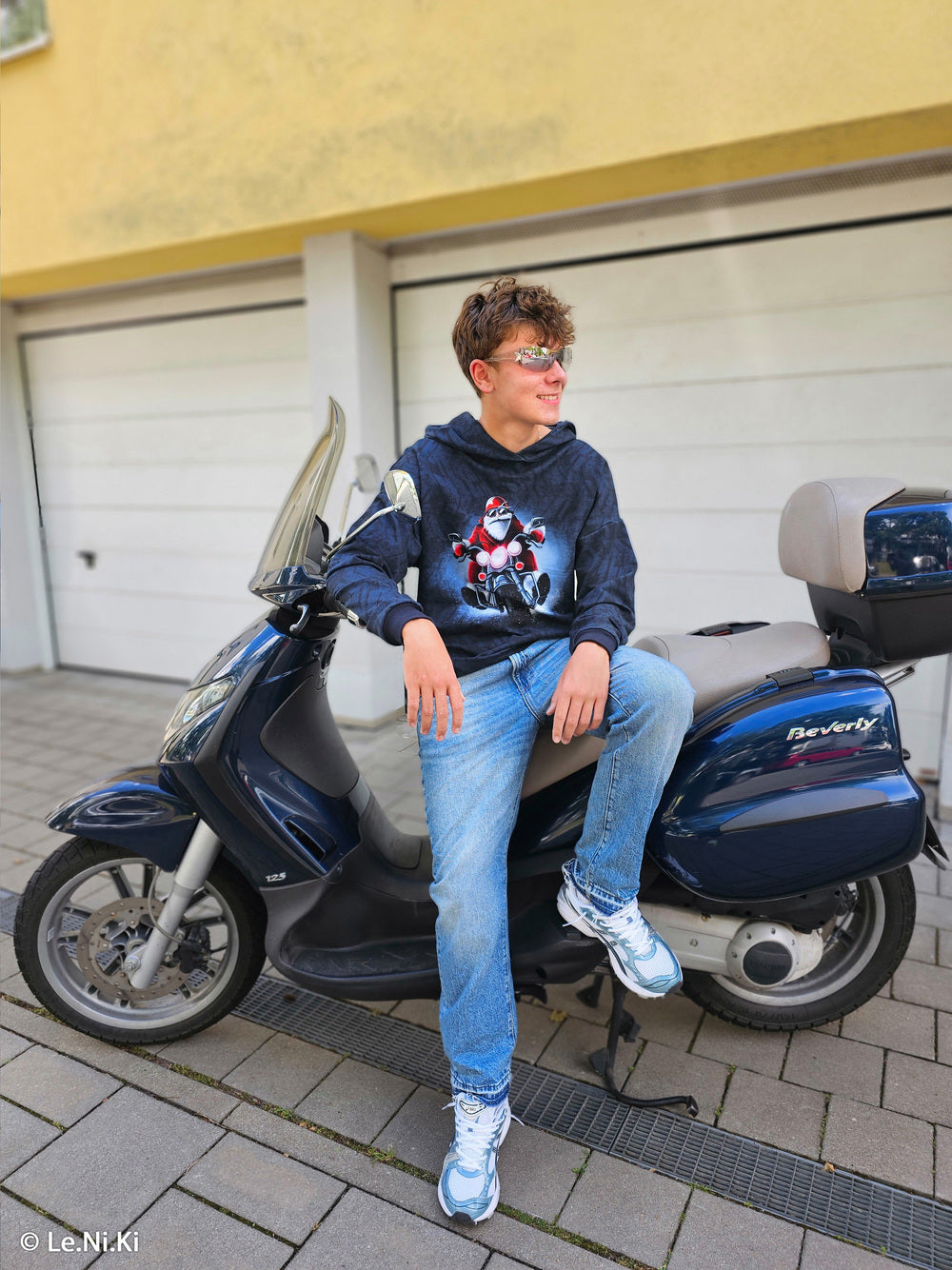 Der passende Kombistoff zum Panel "Santa 2.0" - Santa 2.0 hat seinen Schlitten in diesem Jahr gegen ein Motorrad getauscht!