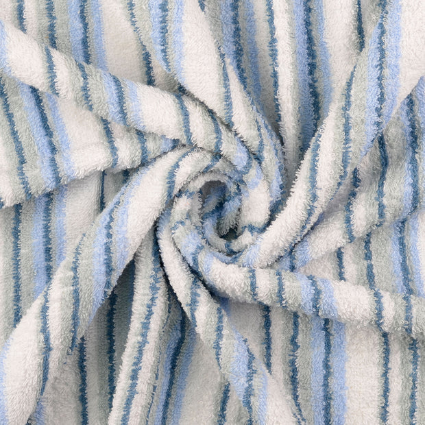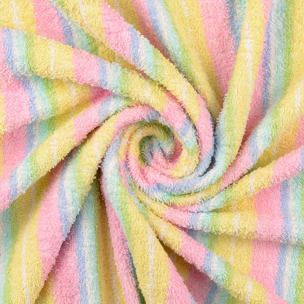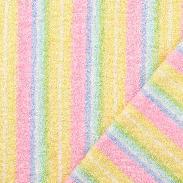 Toller, garngefärbter Frottee Stoff mit bunten Streifen.