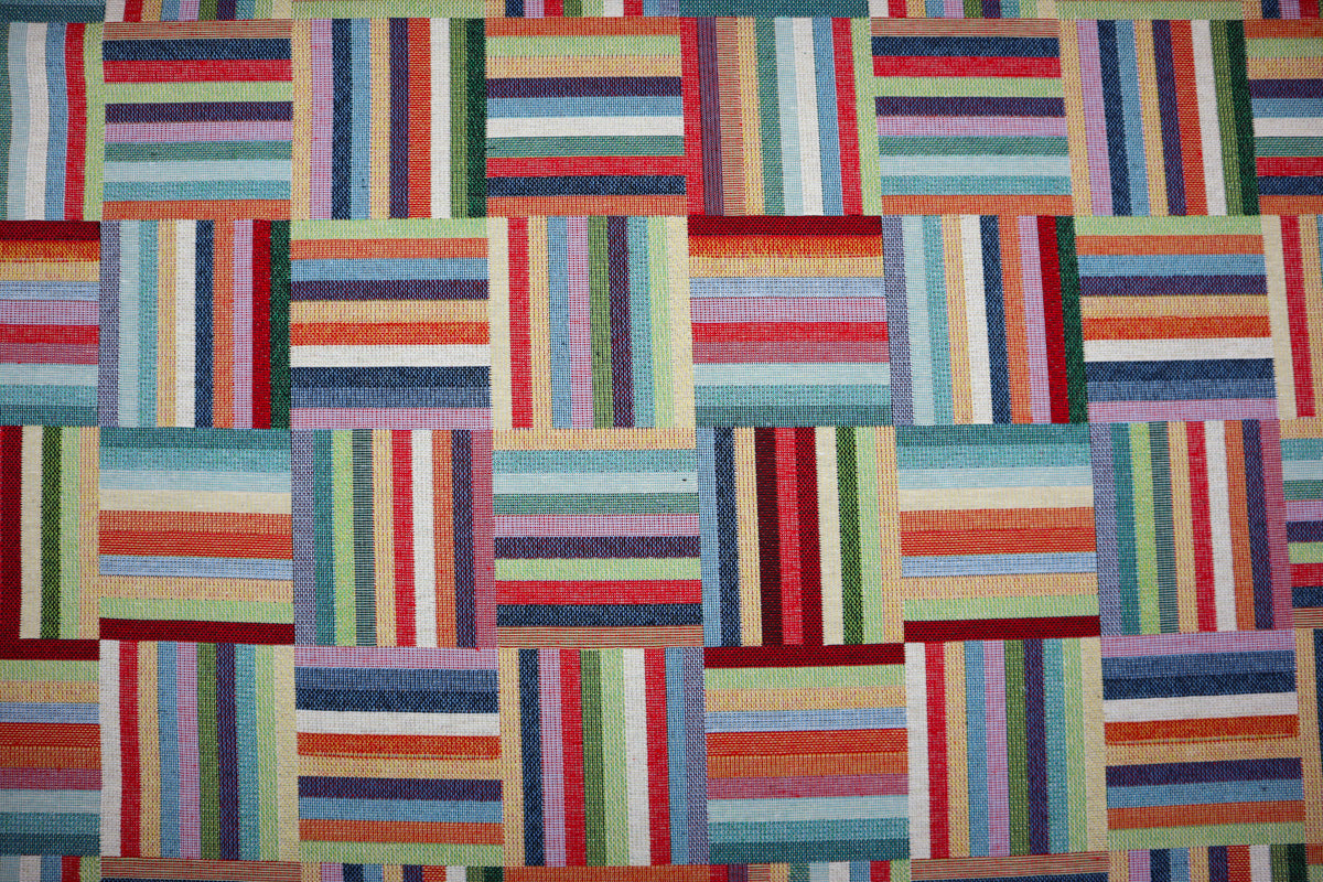 Hochwertiger Gobelin mit buntem Stäbchenmuster im Parkett Stil.