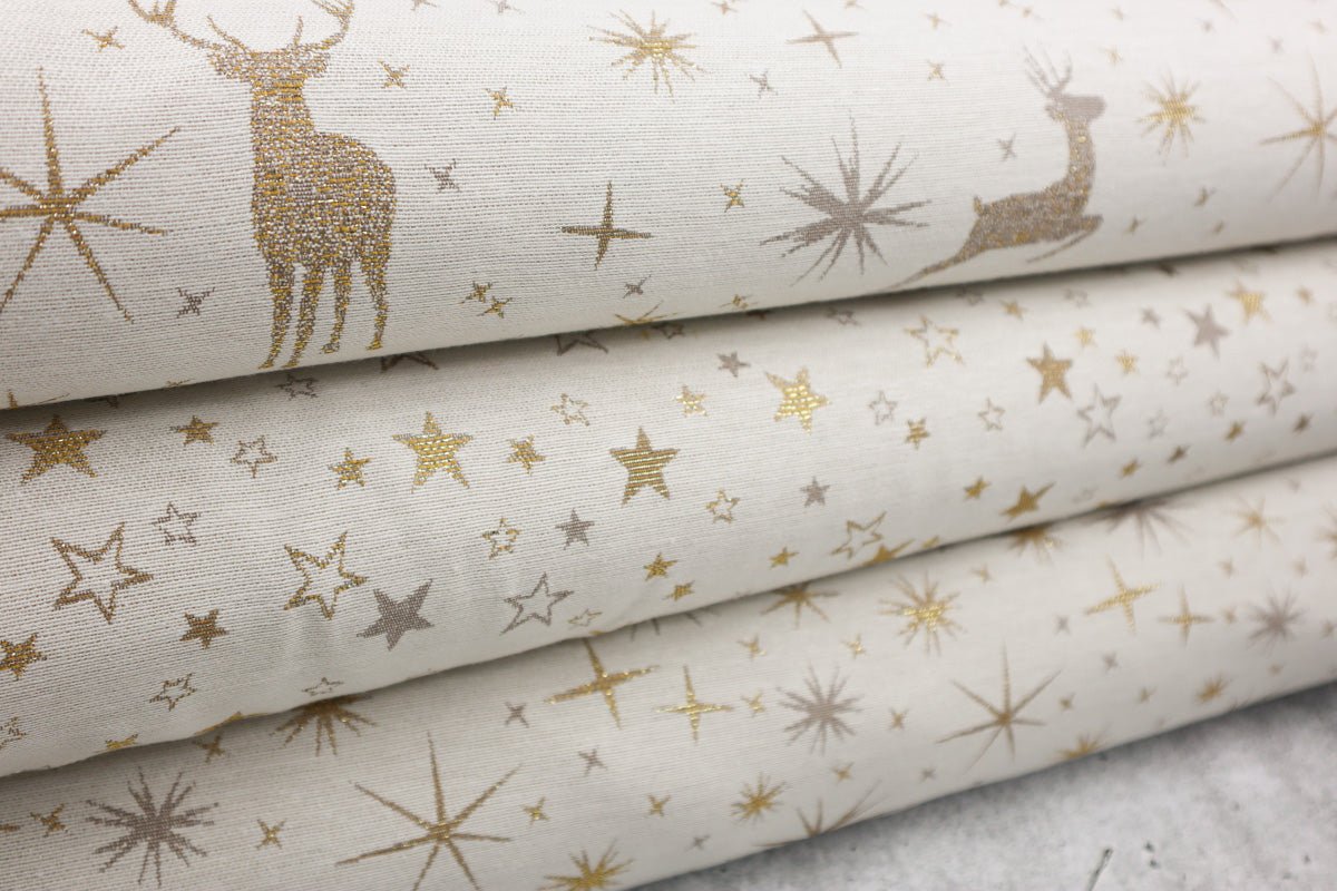 Durch den metallisierten Polyester-Lurexfaden in der Farbe Gold wird dieser Stoff zu einem echten Hingucker!