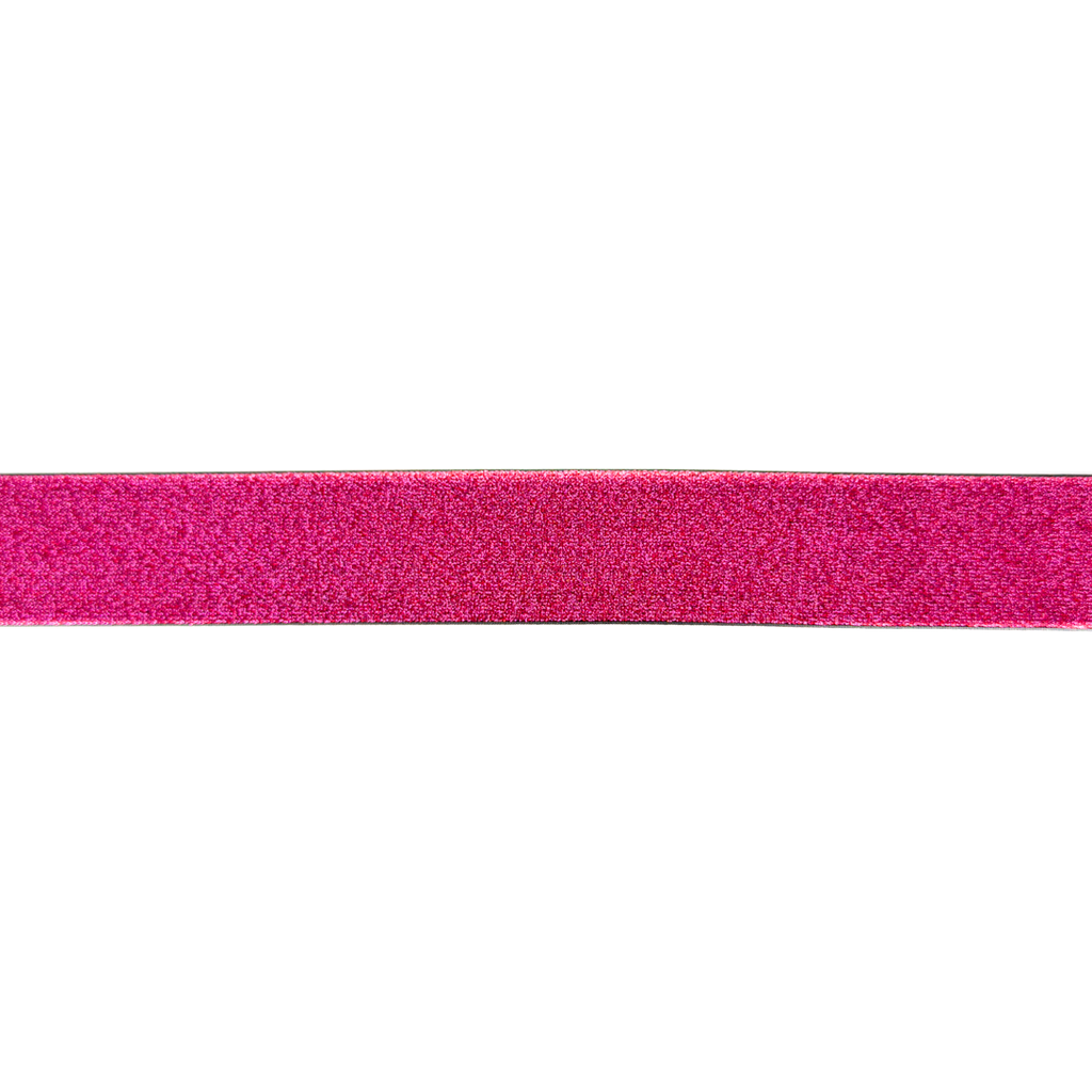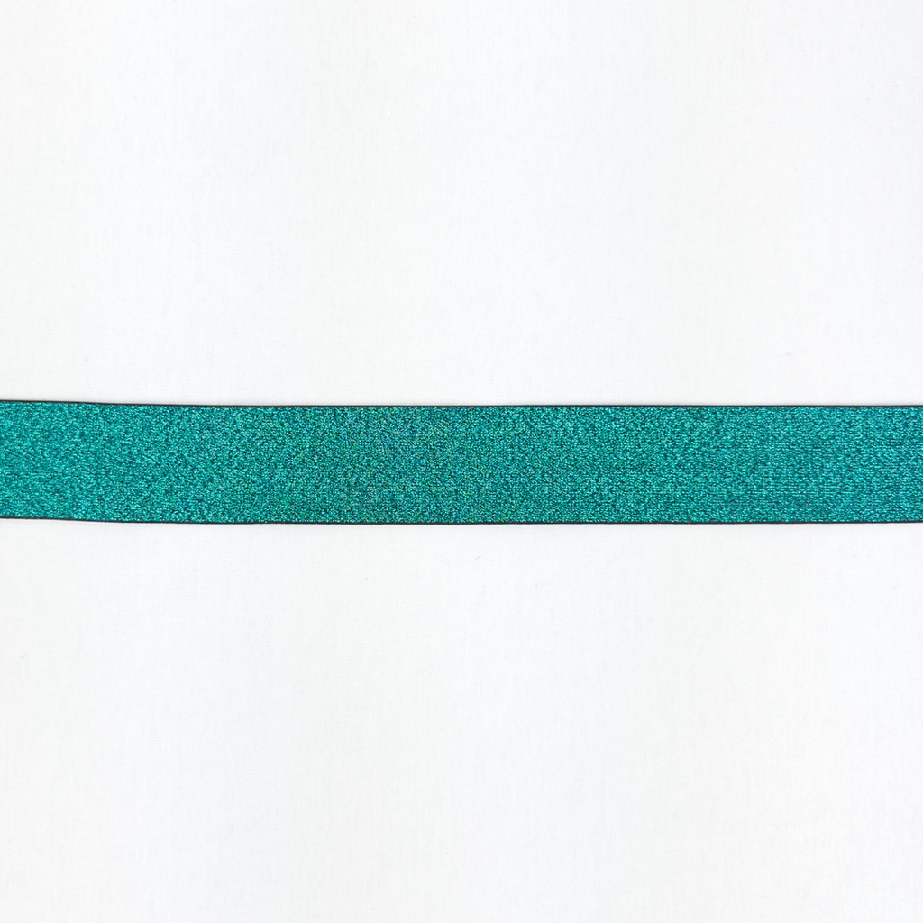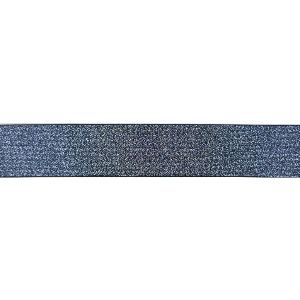 Breites stylisches Gummiband für dein nächstes Nähprojekt. In das Gummiband sind auf der einen Seite glitzernde Metallic-Fäden eingearbeitet.