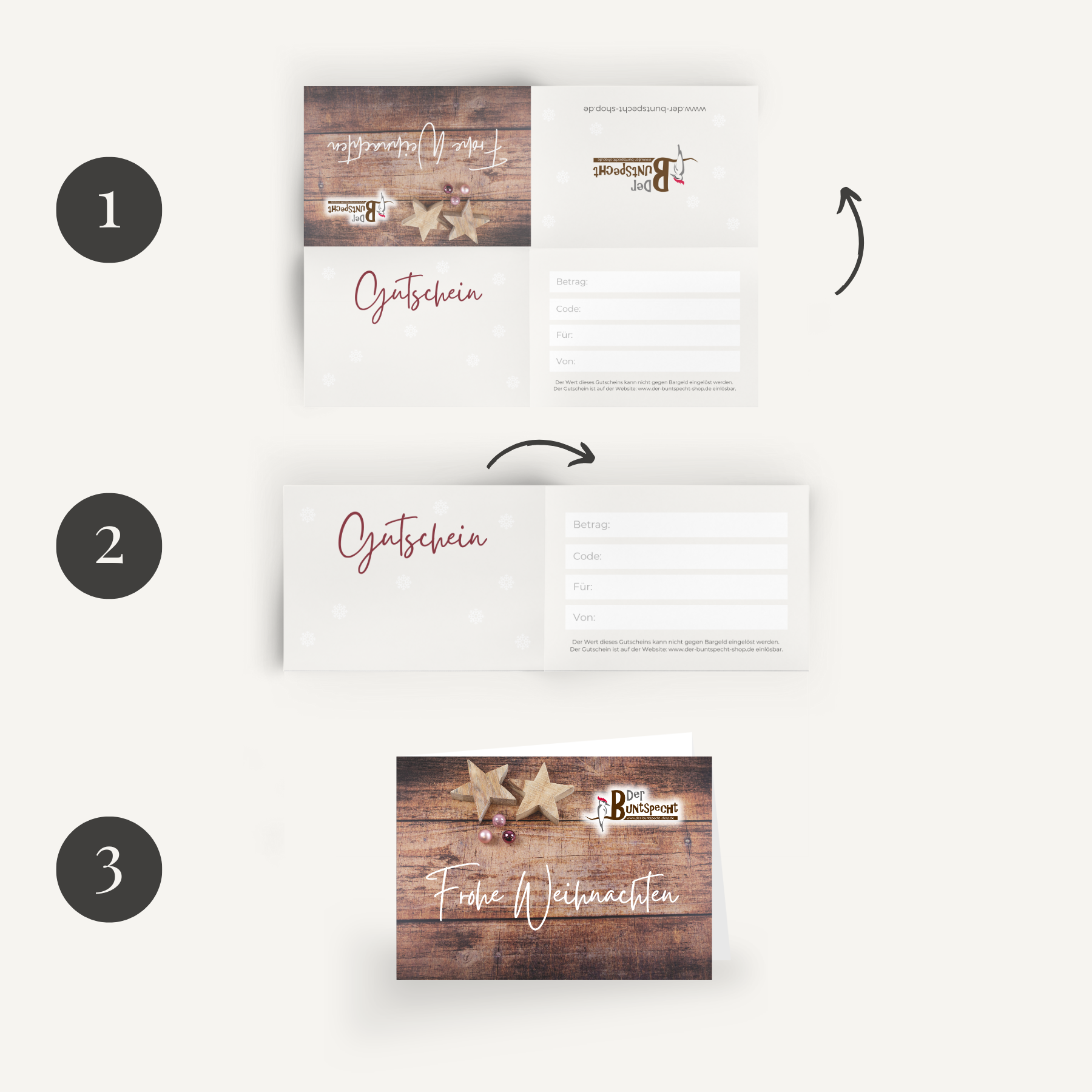 Nach erfolgreicher Bezahlung dieses Gutscheins erhältst du eine E-Mail inkl. Gutschein-Code. Diese Mail kann entweder bequem weitergeleitet oder ausgedruckt und persönlich verschenkt werden. Es stehen verschiedene Layouts zur Verfügung.