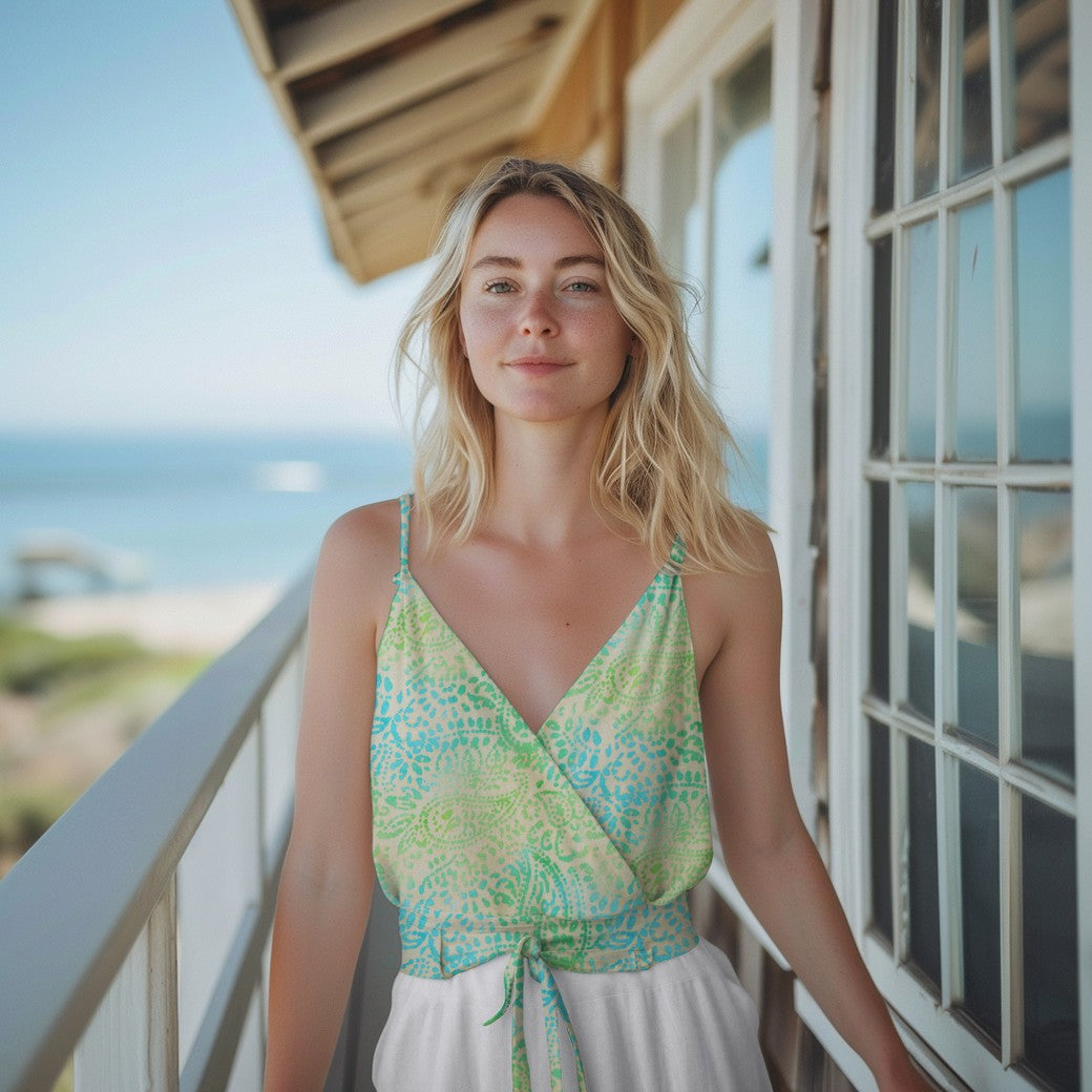 Dieser Viskosestoff wurde in mühevoller Arbeit und mit der Kunst des "Blockprint" handgefertigt.