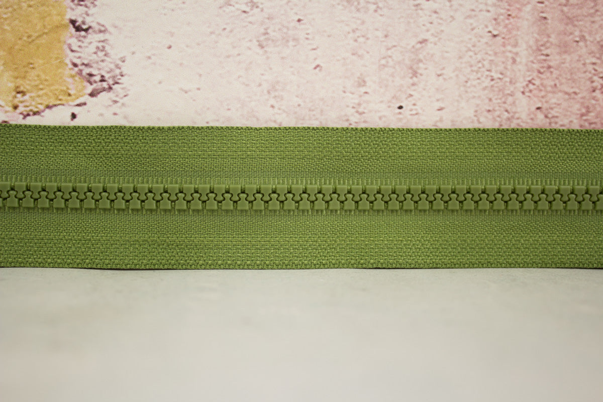 Teilbarer, strapazierfähiger Reißverschluss mit groben Zähnchen.