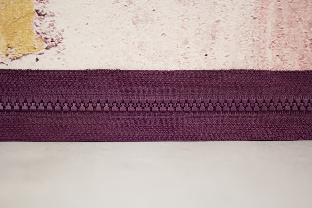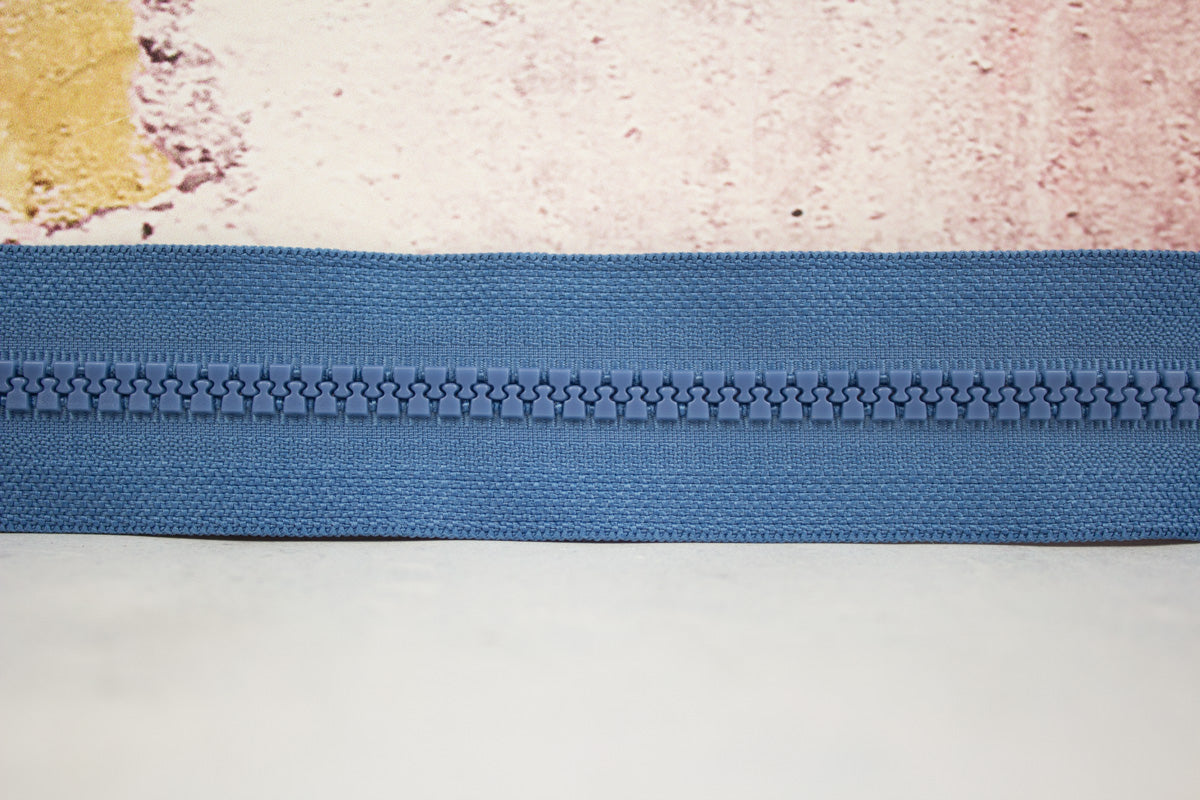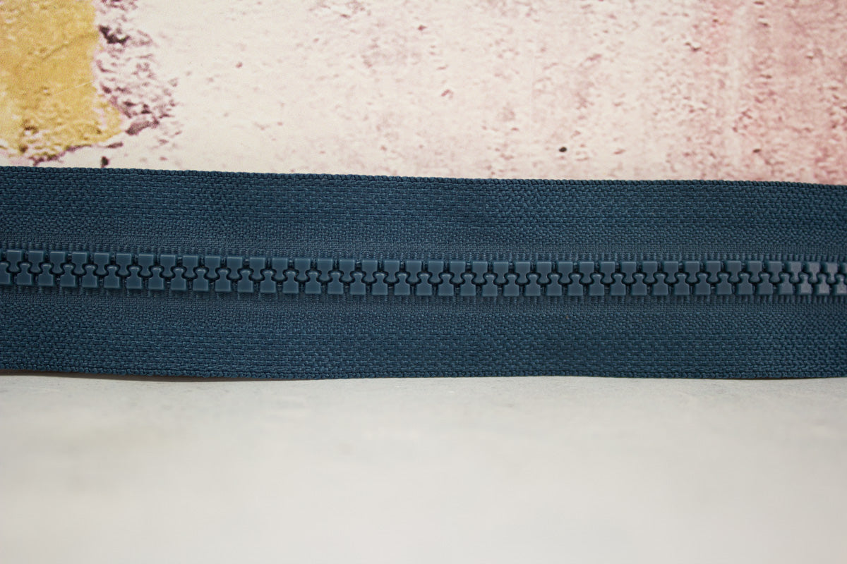 Teilbarer, strapazierfähiger Reißverschluss mit groben Zähnchen.