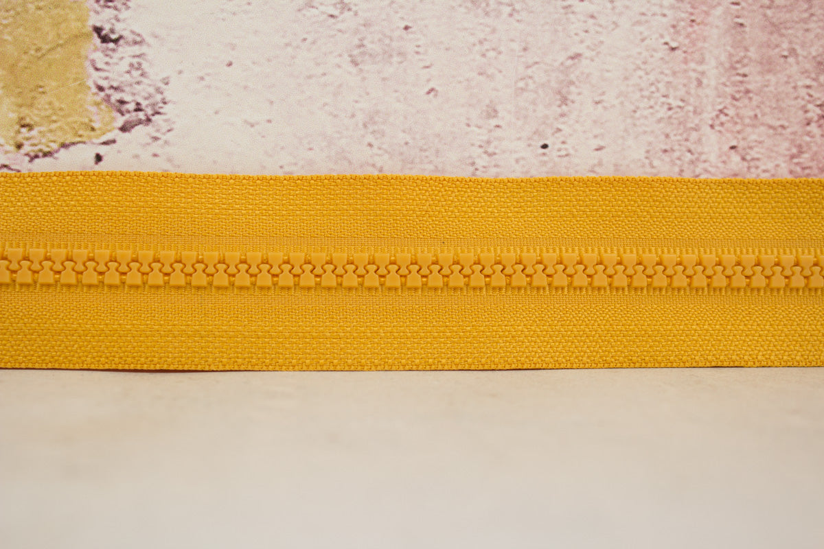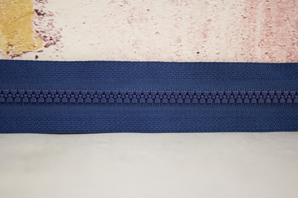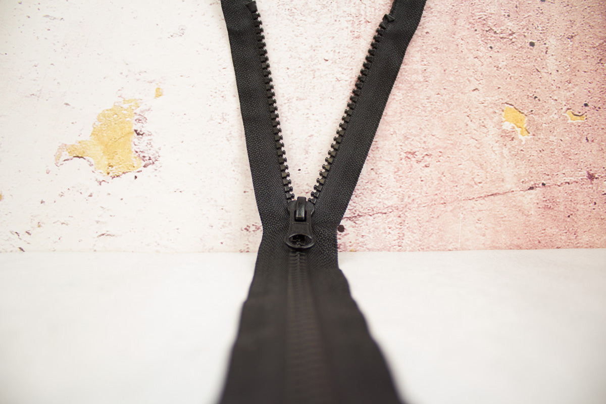 Teilbarer, strapazierfähiger Reißverschluss mit groben Zähnchen.