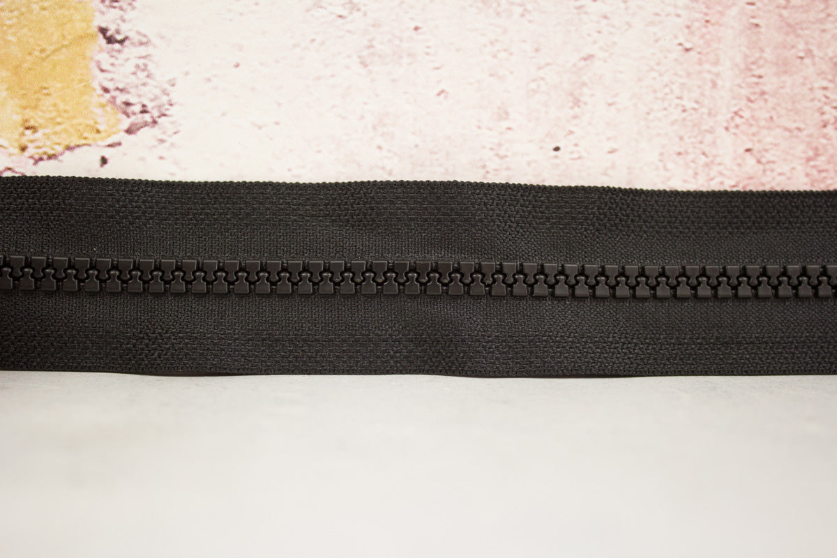 Teilbarer, strapazierfähiger Reißverschluss mit groben Zähnchen.