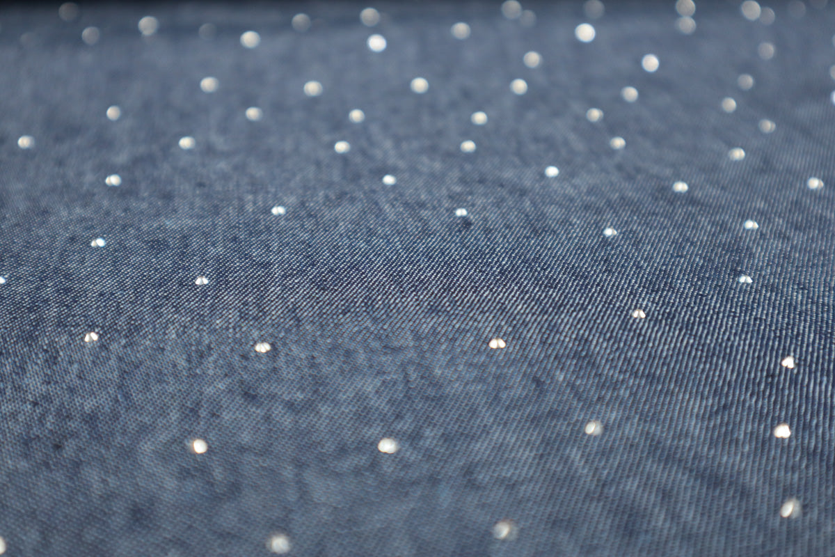 Toller, fester Jeansstoff mit kleinen , silbernen Glitzer-Drops. Einzeln oder als Kombistoff zu verwenden.