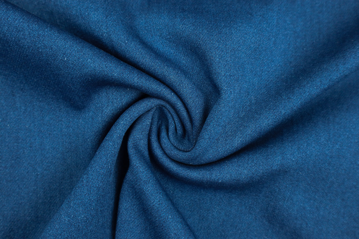 Bei diesem Stoff wird das Aussehen von gewebtem Jeansstoff mit den komfortablen Eigenschaften von Strickstoff kombiniert.