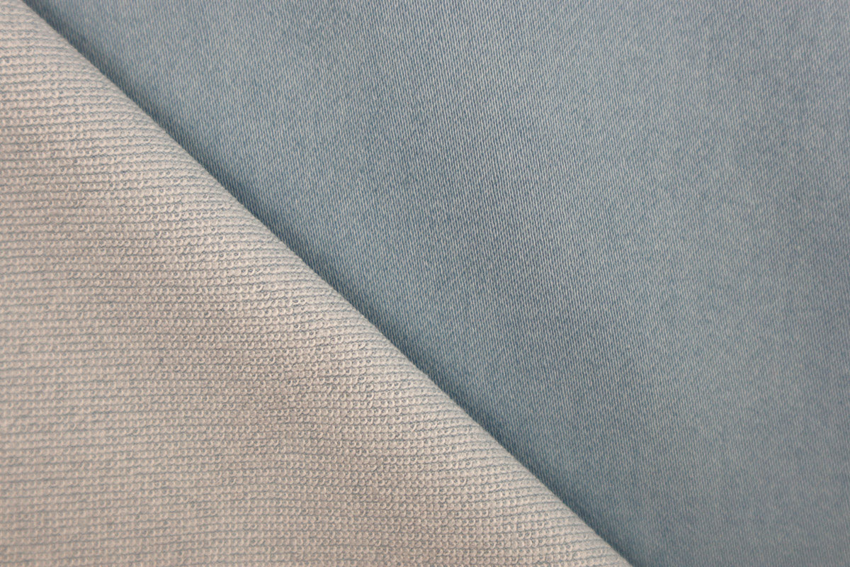 Bei diesem Stoff wird das Aussehen von gewebtem Jeansstoff mit den komfortablen Eigenschaften von Strickstoff kombiniert.