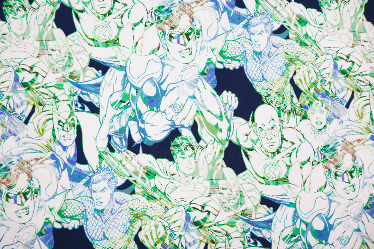 Dieser tolle Baumwolljersey nimmt dich mit in die Welt der Superhelden - auf der Suche nach Gerechtigkeit.