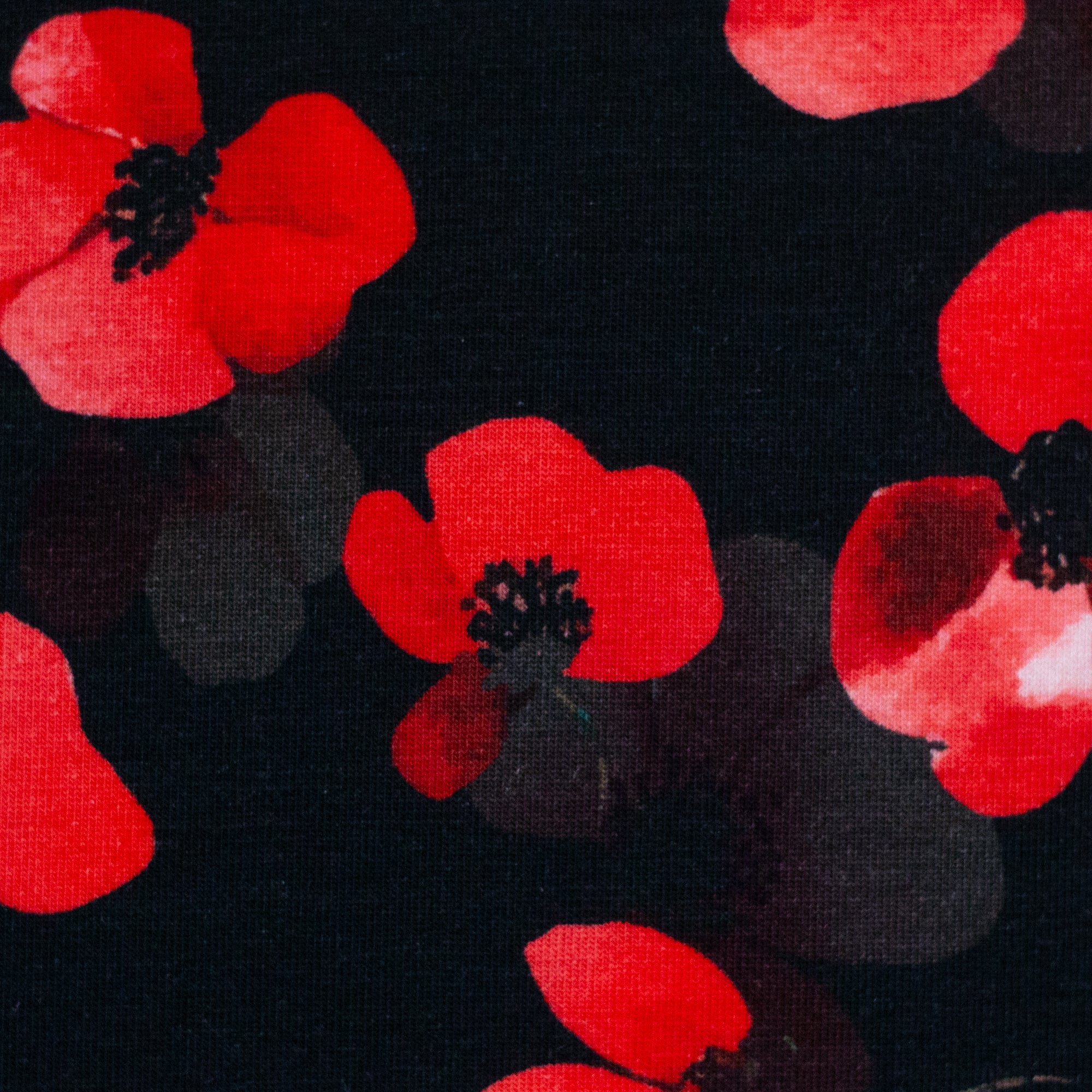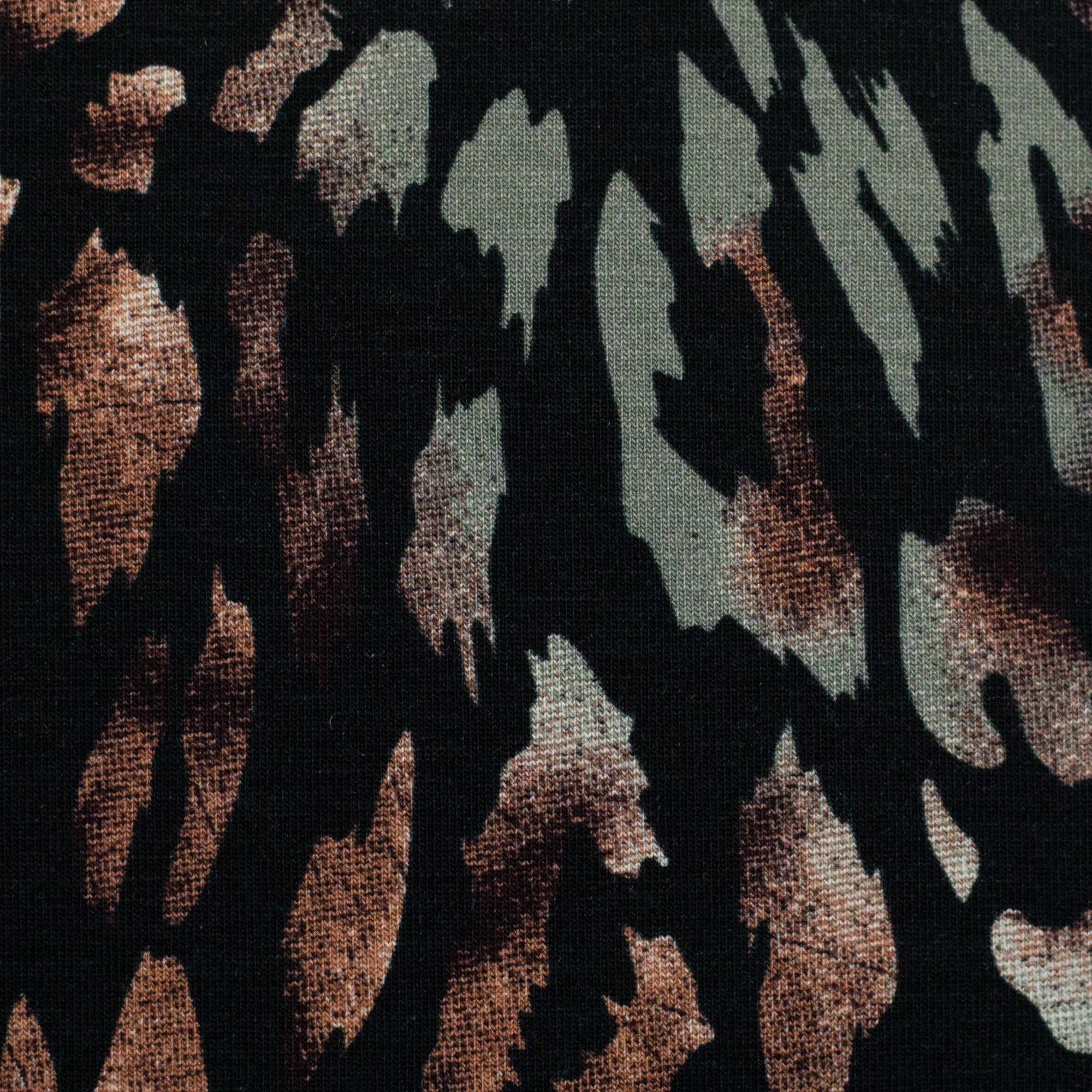 Auf dem feinen Modaljersey wirken die Farben sichtbar satt und tief – ob auf dunklen Untergründen wie Schwarz oder Blau oder in warmen Natur- und Terracottatönen.