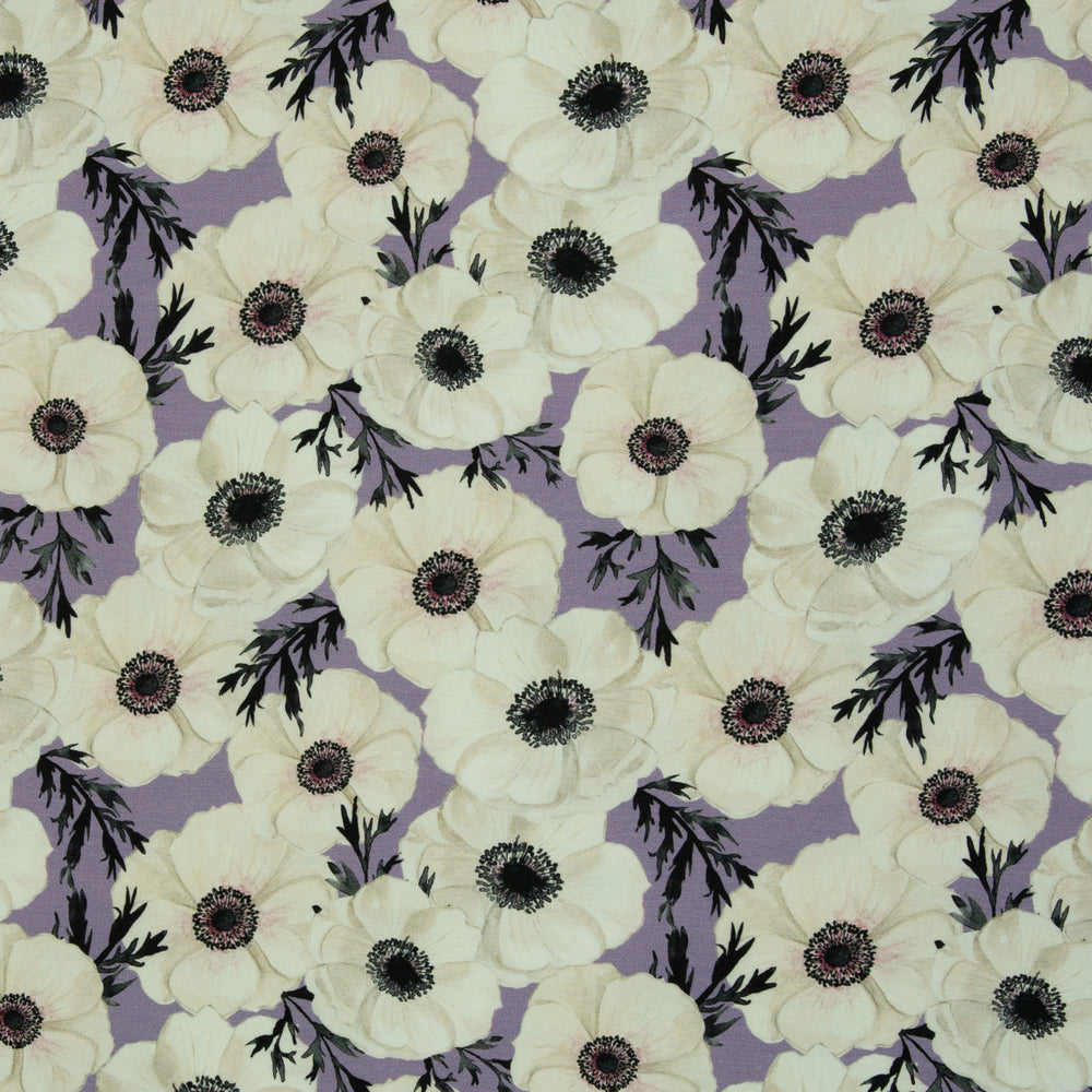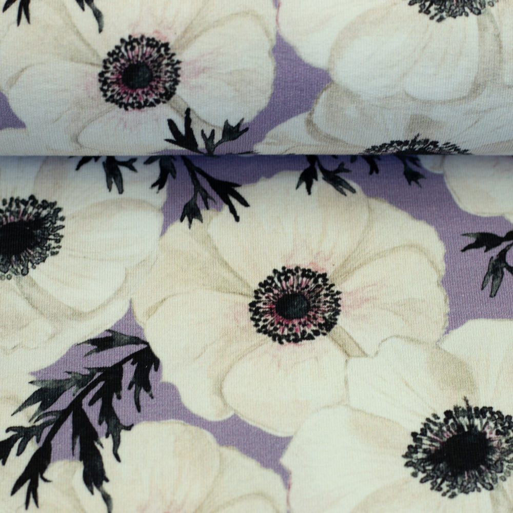 Butterweicher Modal French Terry mit tollem Blumenmuster mit Annemonen in 4 verschiedenen zarten Farben.