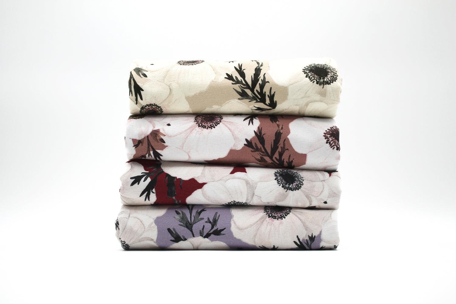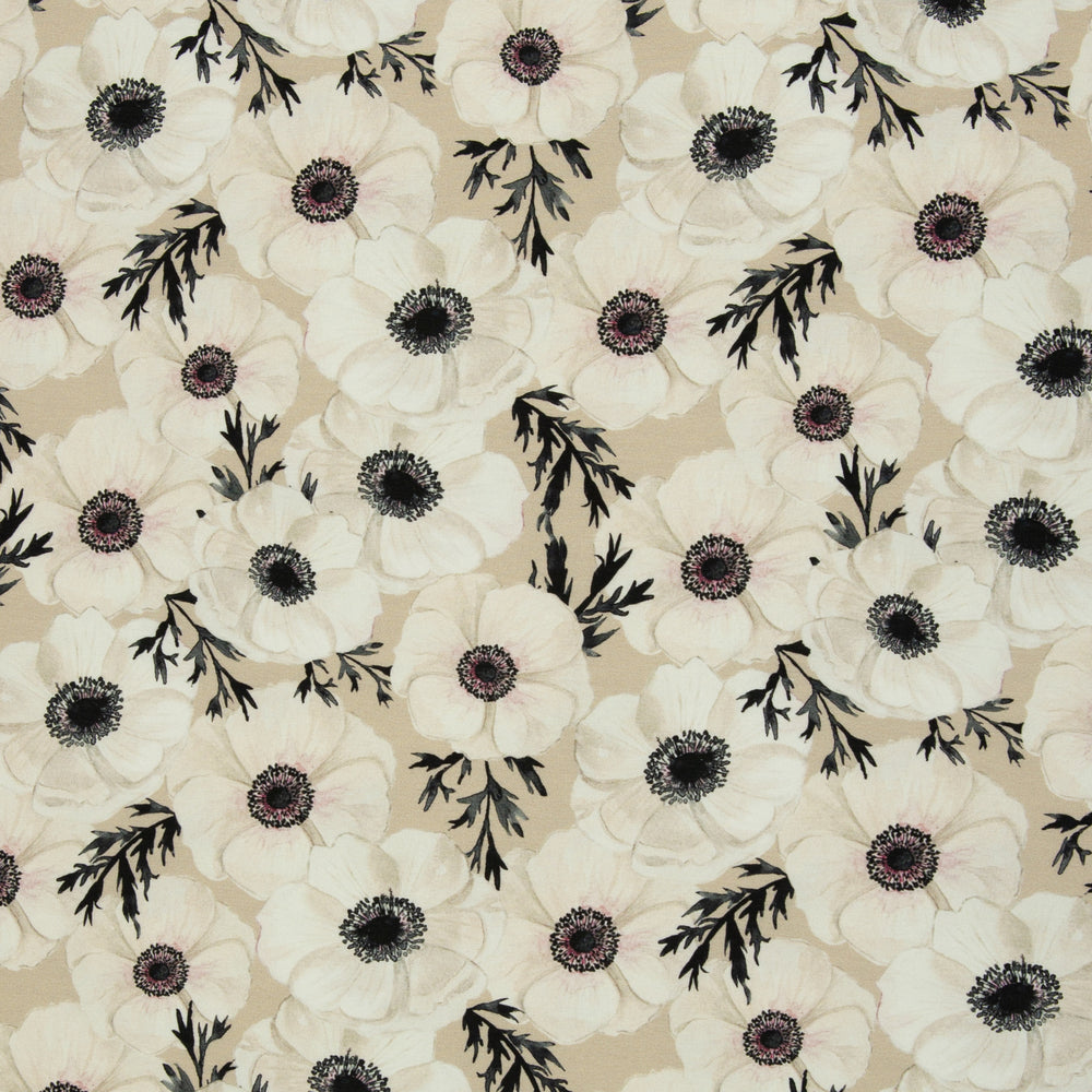 Butterweicher Modal French Terry mit tollem Blumenmuster mit Annemonen in 4 verschiedenen zarten Farben.
