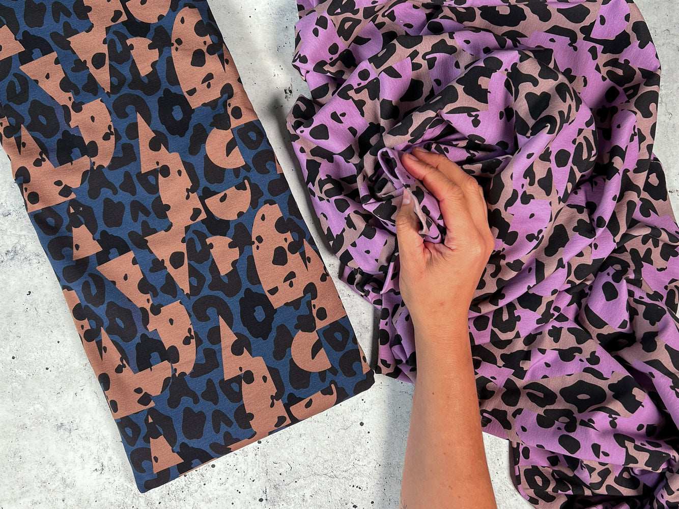 Stella ist der stylische Modal-French Terry mit dem abstrakten Leo-Design. Durch die zusätzlichen Formen bekommt das Leo-Pattern eine besonders interessante Optik. Beigegrundig mit Schwarz und Rose oder Dunkelblau mit Schwarz und Mokka – so schön und angesagt! Dieses Design wirkt stylisch, edel oder lässig – je nach Schnittmuster immer wieder anders.