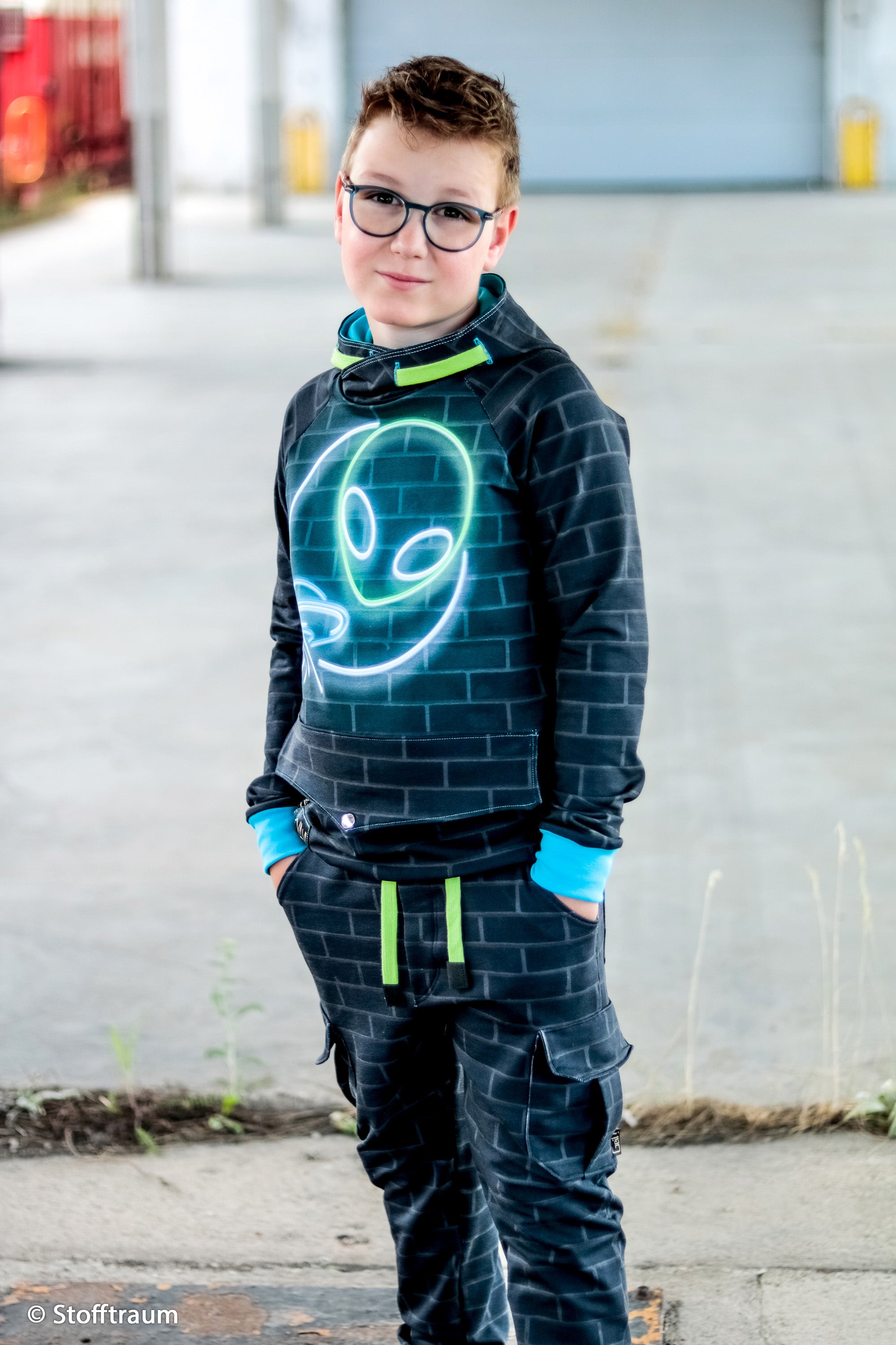 Designerin Berit Winter hat das Feeling dieser Lichter der Nacht eingefangen und so strahlt bei Glow bunte NEON-Leuchtreklame auf kuscheligem French Terry.