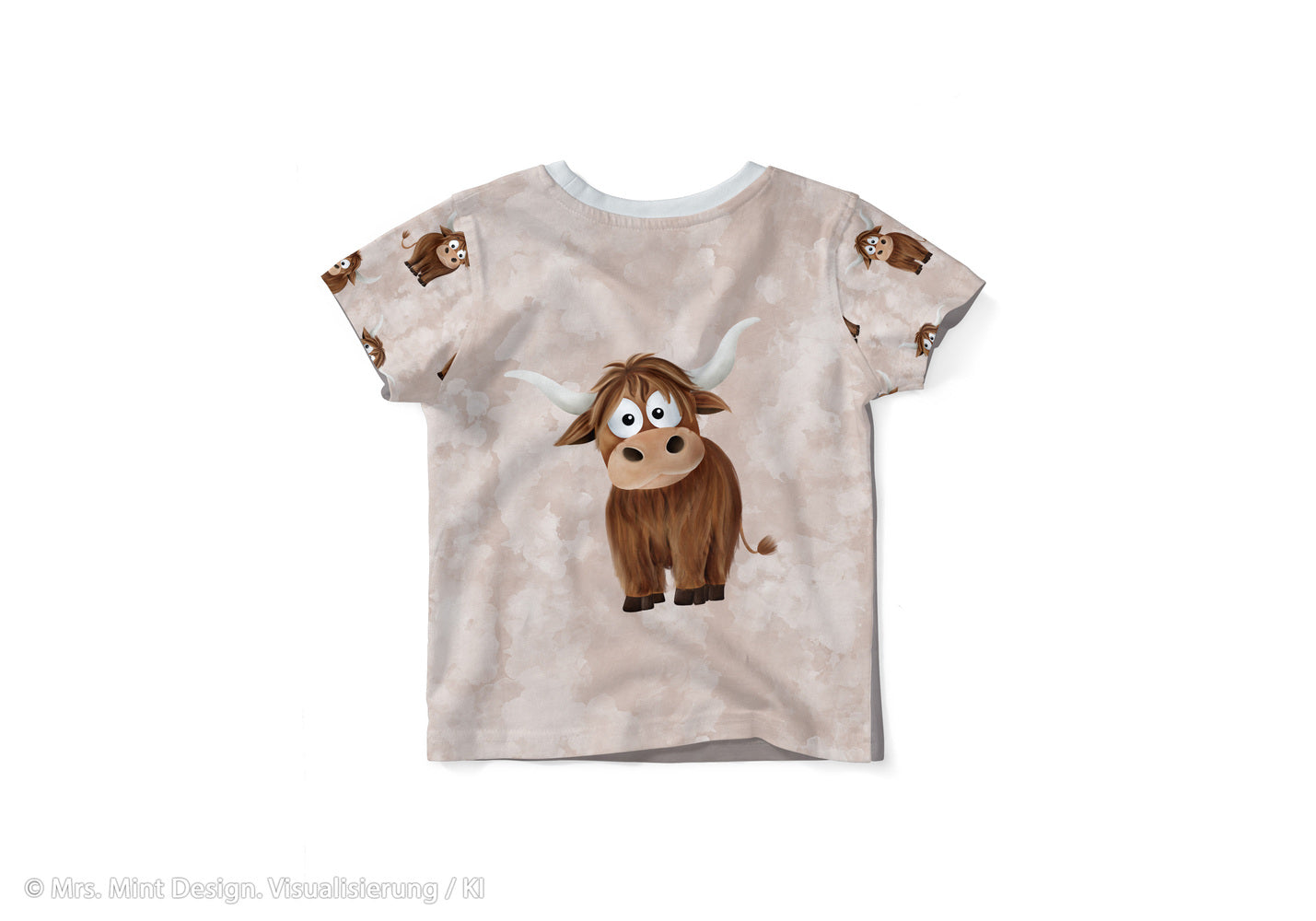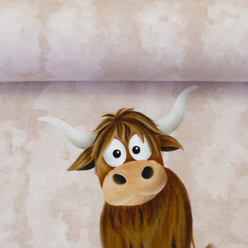 Die beliebten Kinderstoffe der Designerin begeistern mit liebevollen, detailreichen Illustrationen – und diesmal stehen die Highland Cows, die trendigen schottischen Hochlandrinder im Mittelpunkt.