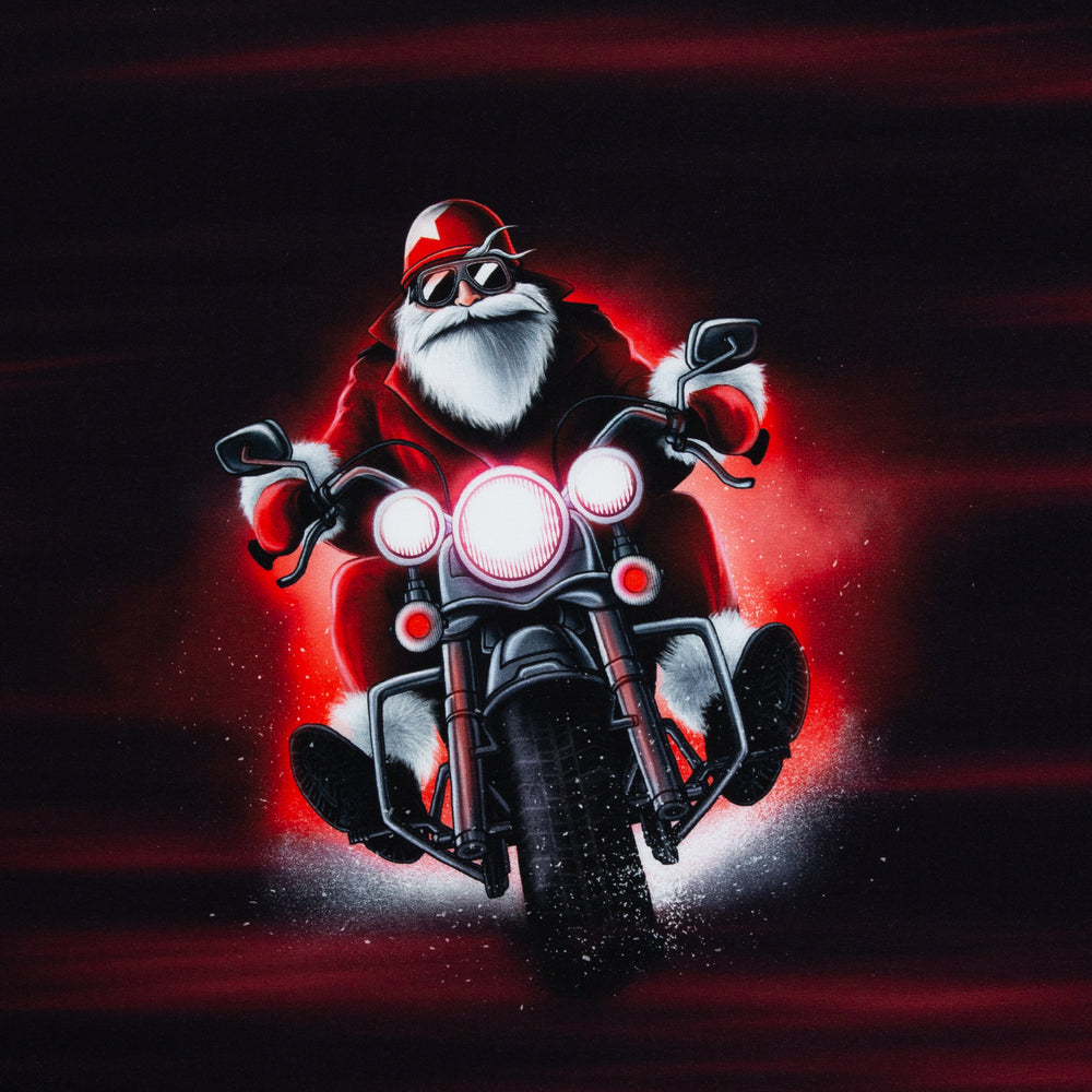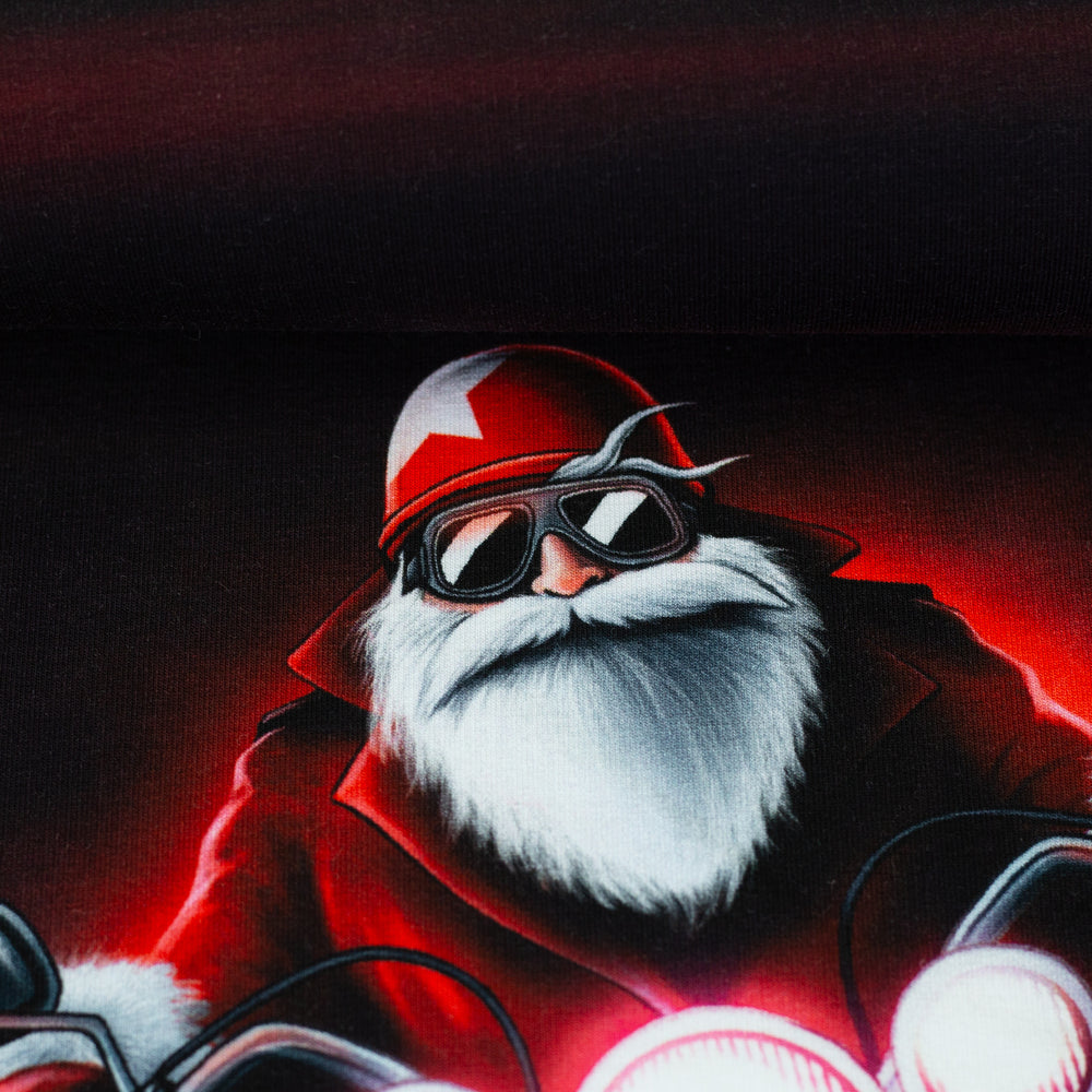 Santa 2.0 hat seinen Schlitten gegen ein Motorrad getauscht! Das Panelmotiv gibt es in zwei Varianten: einmal feuerrot im Speedstreifen-Look und einmal in coolen Jeans-Blautönen mit Grunge-Optik. Dazu gehört jeweils ein Kombistoff, der die Dynamik perfekt aufgreift.